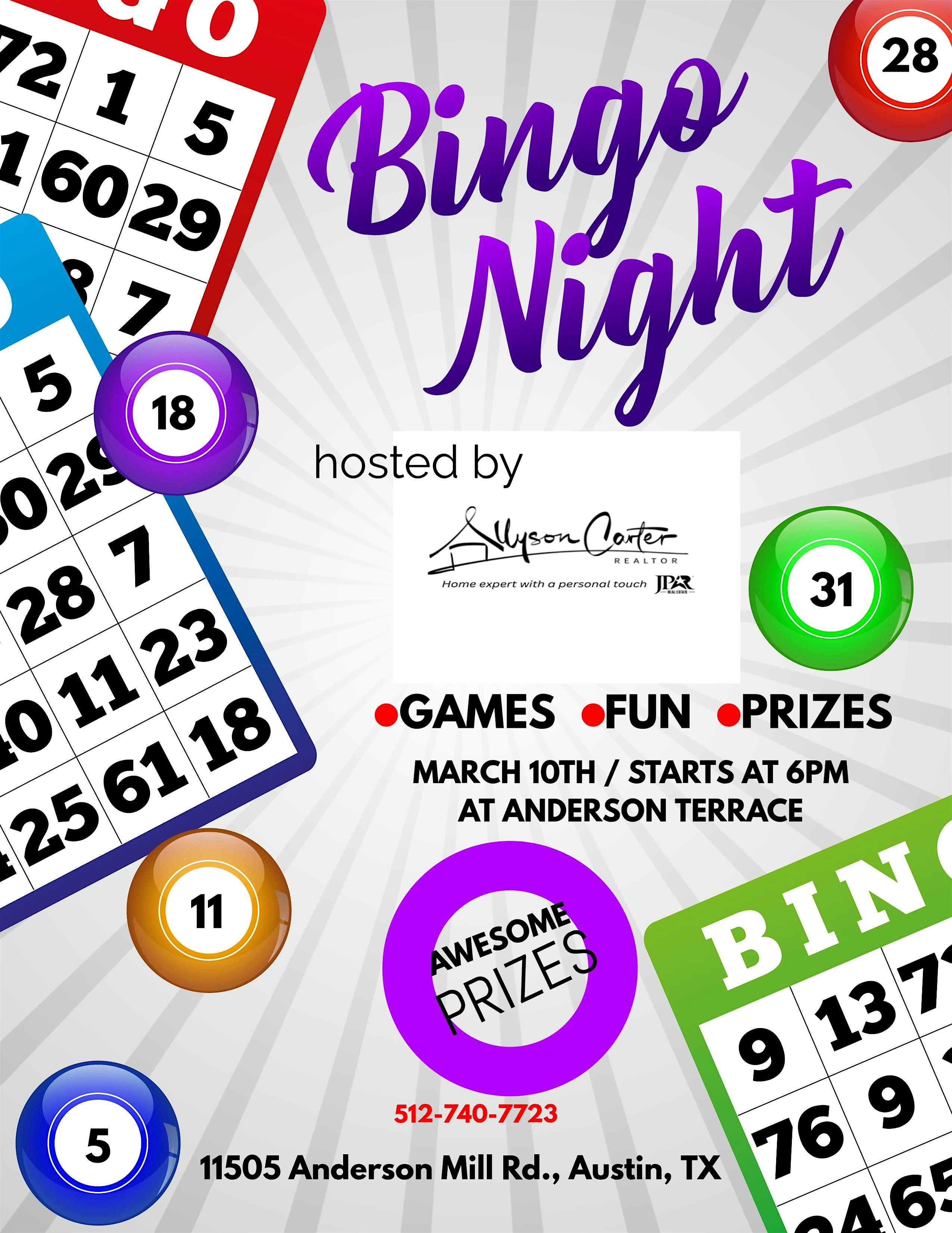by admin27Feb Bingo Night at Anderson Terrace Weddings & Events Venue – Austin, TX Bingo Night at Anderson Terrace Weddings & Events Venue – Austin, TX 2 2 people viewed this event. Get ready to shout BINGO and win some cool prizes with friends in a fun, laid-back night! Tickets-RSVP Link Date And Time Tuesday, March 10th, 2026 @ 06:00 PM Location 11505 Anderson Mill Road, Austin, TX 78750 Event Types OtherParty or Social Gathering Event Category AustinTexas Share With Friends Facebook Twitter Linkedin Xing Pinterest Share This Post:
