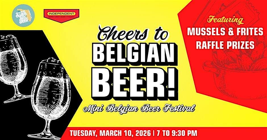 by admin14Feb Cheers to Belgian Beer! at Independent Bar and Cafe – Tampa, FL Cheers to Belgian Beer! at Independent Bar and Cafe – Tampa, FL 1 1 people viewed this event. Come celebrate the World Class Beers from Belgium during this two hour elite tasting, plus mussels and frites, and raffle prizes! Tickets-RSVP Link Date And Time Tuesday, March 10th, 2026 11:00 PM (PST) Venue Independent Bar and Cafe Location 5016 North Florida Avenue, Tampa, FL 33603 Event Types Festival or FairFood & Drink Event Category FloridaTampa Share With Friends Facebook Twitter Linkedin Xing Pinterest Share This Post: