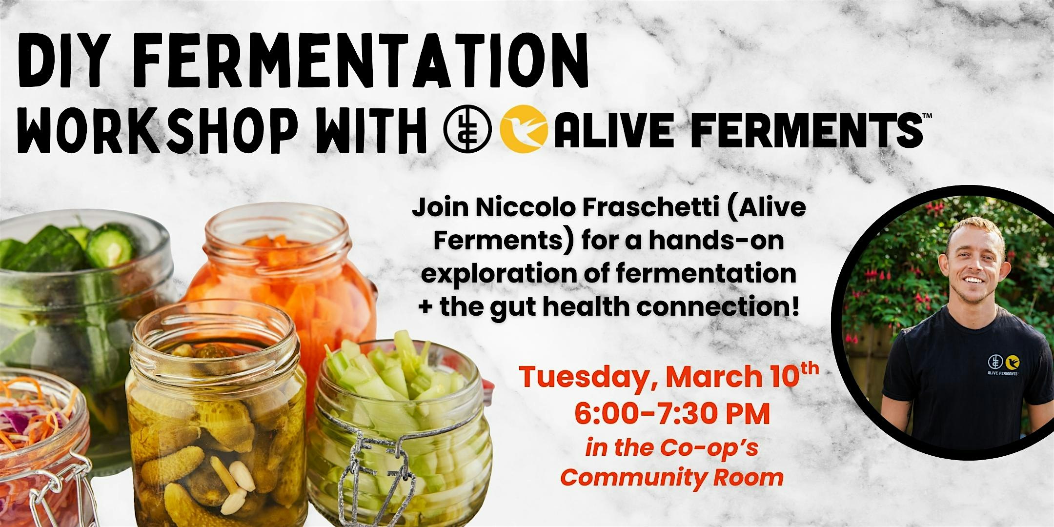 by admin23Feb DIY Fermentation Workshop at OB People’s at Ocean Beach People’s Food Co-op – San Diego, CA DIY Fermentation Workshop at OB People’s at Ocean Beach People’s Food Co-op – San Diego, CA 2 2 people viewed this event. Hands on DIY fermentation workshop at People’s Food Co-op with Alive Ferments! Learn about the benefits of fermented foods and gut health! Tickets-RSVP Link Date And Time Tuesday, March 10th, 2026 06:00 PM (PST) Venue Ocean Beach People's Food Co-op Location 4765 Voltaire Street, San Diego, CA 92107 Event Types Food & Drink Event Category CaliforniaSan Diego Share With Friends Facebook Twitter Linkedin Xing Pinterest Share This Post: