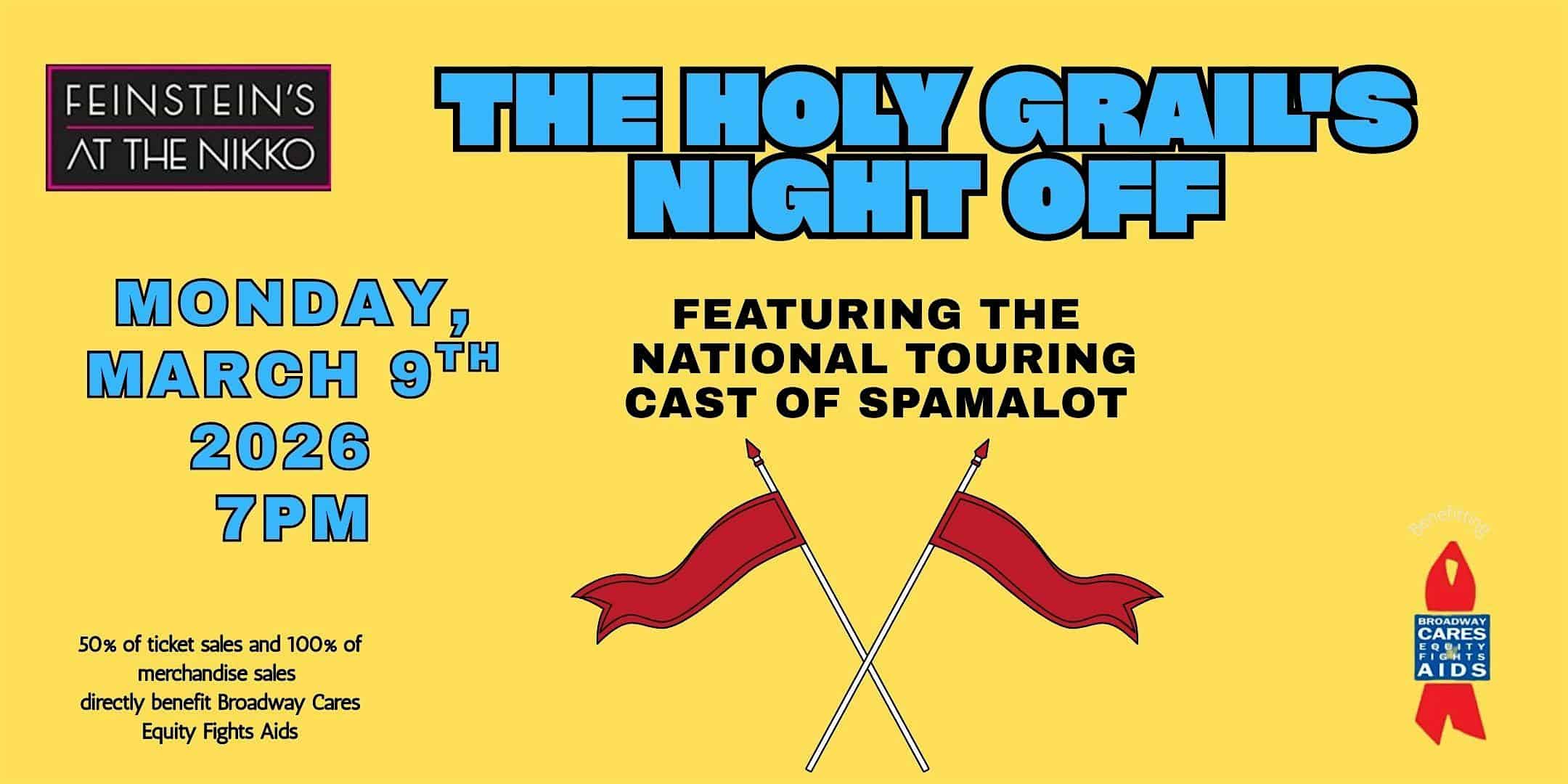 by admin14Feb Holy Grail’s Night OFF: National Touring Cast of the “SPAMALOT” at Feinstein’s at the Nikko – San Francisco, CA Holy Grail’s Night OFF: National Touring Cast of the “SPAMALOT” at Feinstein’s at the Nikko – San Francisco, CA 2 2 people viewed this event. Join us on Monday, March 9th at 7:00 pm, to see the cast of “SPAMALOT” playing 3/3-3/22 at the Golden Gate Theater, SF. Tickets-RSVP Link Date And Time Tuesday, March 10th, 2026 02:00 AM (PST) Venue Feinstein's at the Nikko Location 222 Mason Street, San Francisco, CA 94102 Event Types Concert or PerformancePerforming & Visual Arts Event Category CaliforniaSan Francisco Share With Friends Facebook Twitter Linkedin Xing Pinterest Share This Post: