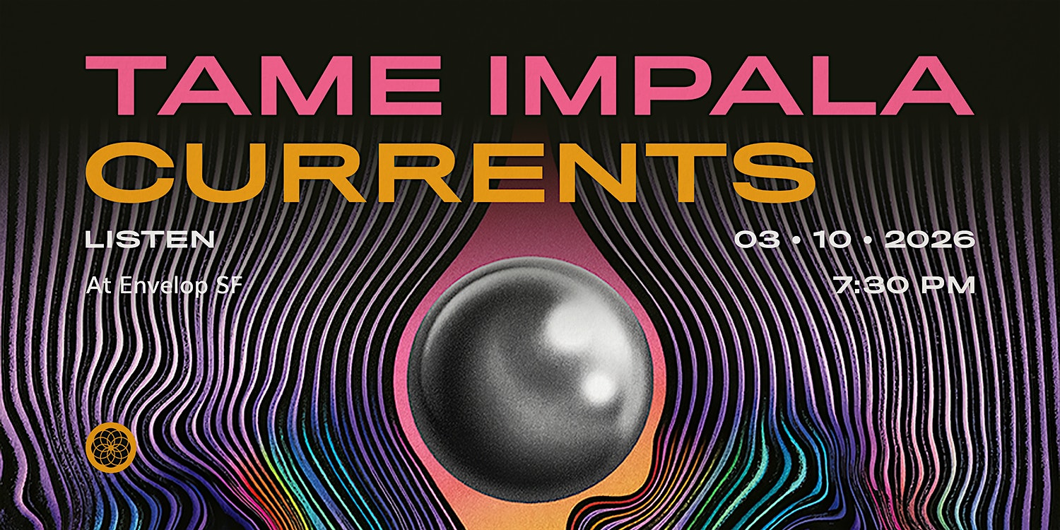 by admin27Feb Tame Impala – Currents : LISTEN | Envelop SF (7:30pm) at Envelop SF – San Francisco, CA Tame Impala – Currents : LISTEN | Envelop SF (7:30pm) at Envelop SF – San Francisco, CA 2 2 people viewed this event. Feel Tame Impala’s “Currents” like never before. Experience its innovative and intricate details within pristine 32-speaker immersive sound. Tickets-RSVP Link Date And Time Tuesday, March 10th, 2026 07:00 PM (PST) Venue Envelop SF Location 900 Marin St., San Francisco, CA 94124 Event Types Concert or PerformanceMusic Event Category CaliforniaSan Francisco Share With Friends Facebook Twitter Linkedin Xing Pinterest Share This Post: