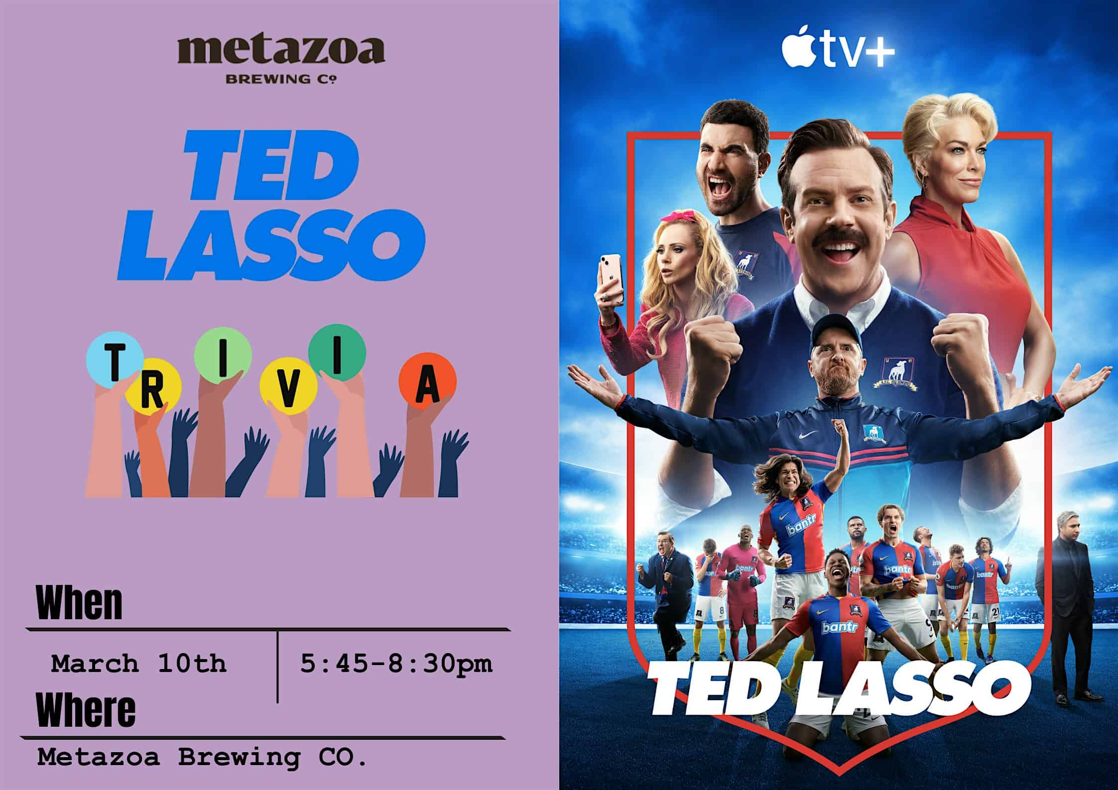 by admin14Feb Ted Lasso Trivia at Metazoa Brewing Company – Indianapolis, IN Ted Lasso Trivia at Metazoa Brewing Company – Indianapolis, IN 2 2 people viewed this event. Join Metazoa for a night of craft beer and themed trivia in our downtown Indianapolis taproom. Reserve 1 table per team, 21+ only. Tickets-RSVP Link Date And Time Tuesday, March 10th, 2026 09:00 PM (PST) Venue Metazoa Brewing Company Location 140 South College Avenue, Indianapolis, IN 46202 Event Types Food & Drink Event Category IndianaIndianapolis Share With Friends Facebook Twitter Linkedin Xing Pinterest Share This Post: