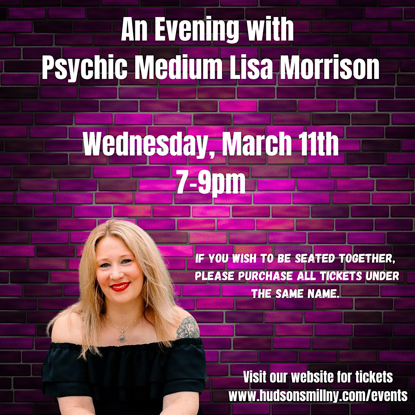 by admin23Feb An Evening with Psychic Medium Lisa Morrison at 55 W Railroad Ave – West Haverstraw, NY An Evening with Psychic Medium Lisa Morrison at 55 W Railroad Ave – West Haverstraw, NY 2 2 people viewed this event. Dinner with Psychic Medium Lisa Morrison Tickets-RSVP Link Date And Time Wednesday, March 11th, 2026 07:00 PM (PST) Venue 55 W Railroad Ave Location 55 West Railroad Avenue, West Haverstraw, NY 10923 Event Types Concert or PerformanceFood & Drink Event Category New York Share With Friends Facebook Twitter Linkedin Xing Pinterest Share This Post: