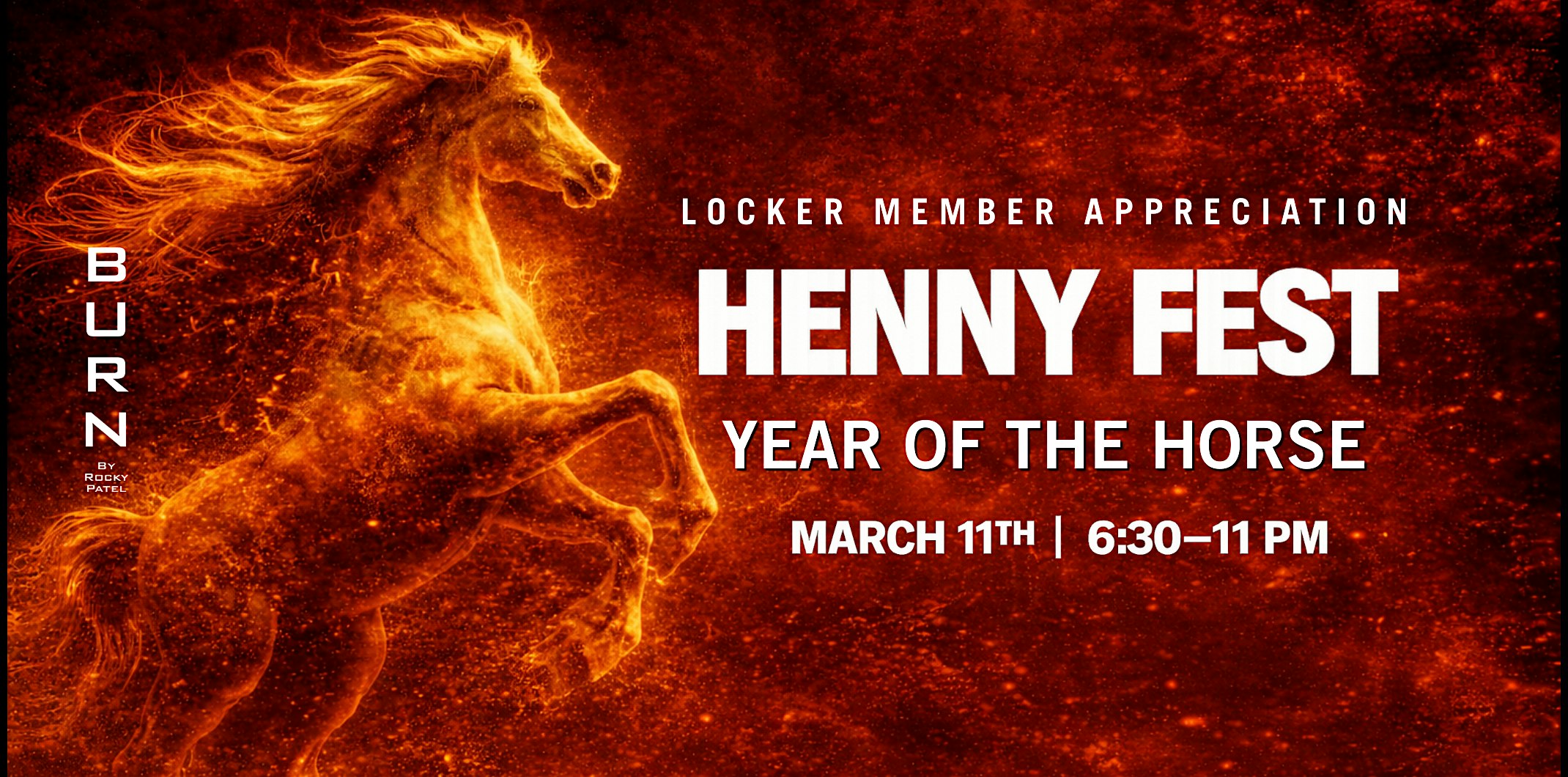 by admin27Feb Henny Fest – Year of the Horse Event at BURN | BURN PGH at BURN by Rocky Patel Pittsburgh – Pittsburgh, PA Henny Fest – Year of the Horse Event at BURN | BURN PGH at BURN by Rocky Patel Pittsburgh – Pittsburgh, PA 2 2 people viewed this event. Henny Fest: Year of the Horse—celebrate March 11 with premium Hennessy pours, Plasencia cigars & an elevated lounge experience, 6:30–11 PM. Tickets-RSVP Link Date And Time Wednesday, March 11th, 2026 @ 06:00 PM Location 346 North Shore Drive, Pittsburgh, PA 15212 Event Types OtherParty or Social Gathering Event Category PennsylvaniaPittsburgh Share With Friends Facebook Twitter Linkedin Xing Pinterest Share This Post: