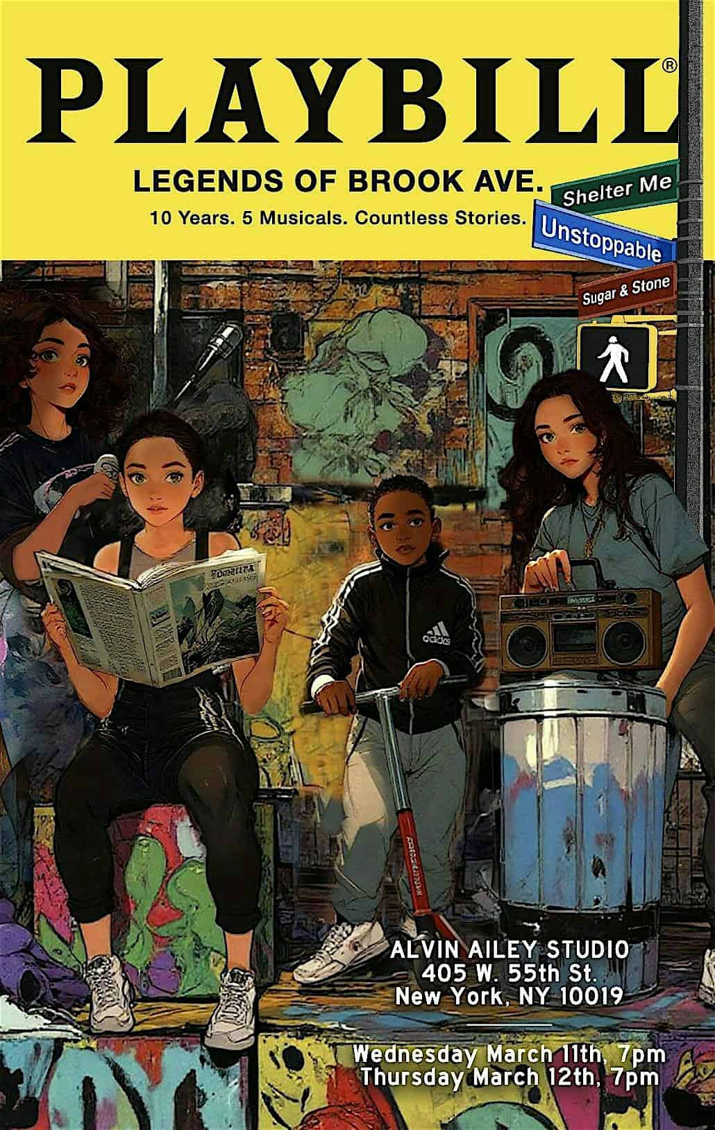 by admin14Feb Legends of Brook Ave: Our Voices. Our Story. Our Legacy. at The Ailey Studios – New York, NY Legends of Brook Ave: Our Voices. Our Story. Our Legacy. at The Ailey Studios – New York, NY 2 2 people viewed this event. 18 Years Strong. 10 Years Original Musicals. Tickets-RSVP Link Date And Time Wednesday, March 11th, 2026 11:00 PM (PST) Venue The Ailey Studios Location 405 West 55th Street, New York, NY 10019 Event Types Concert or PerformancePerforming & Visual Arts Event Category New YorkNew York City Share With Friends Facebook Twitter Linkedin Xing Pinterest Share This Post: