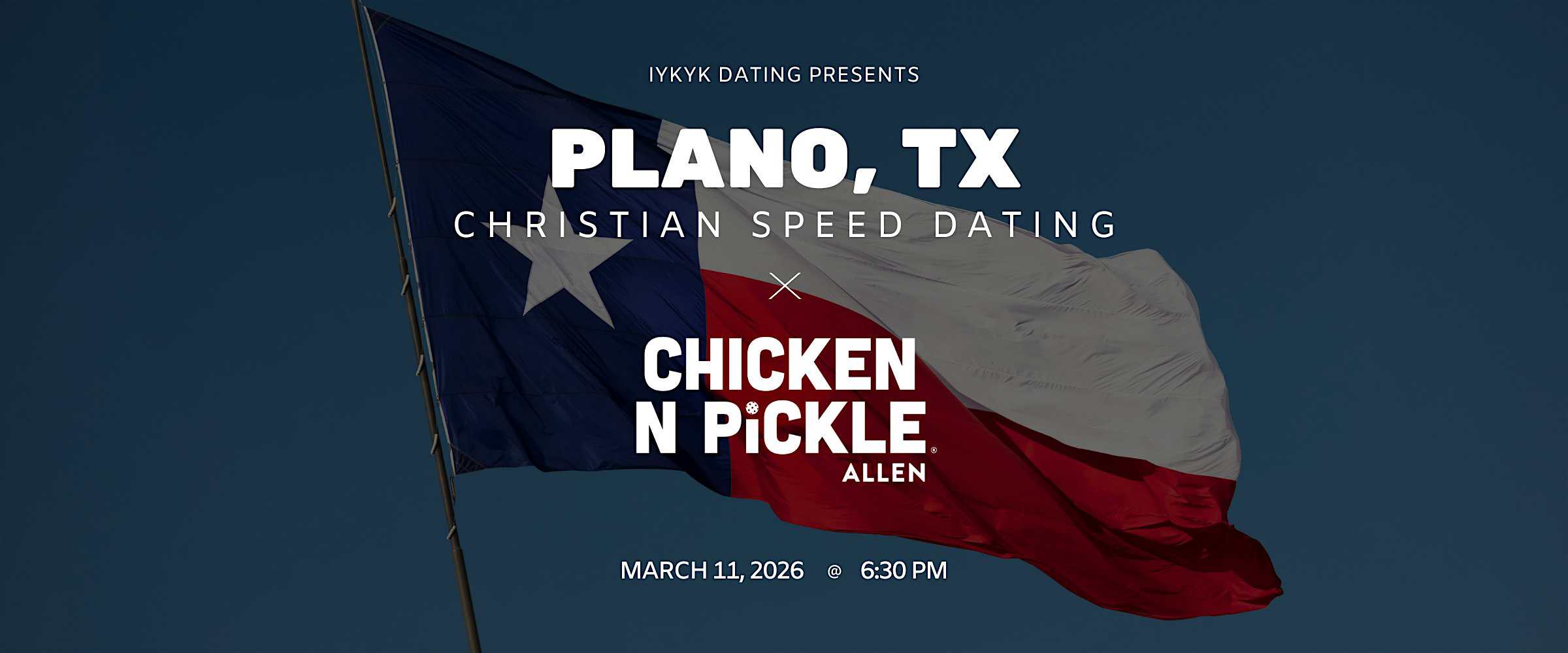 by admin23Feb Plano Christian Speed Dating | IYKYK Dating | 20s-30s | 3/11/26 at Chicken N Pickle- Allen – Allen, TX Plano Christian Speed Dating | IYKYK Dating | 20s-30s | 3/11/26 at Chicken N Pickle- Allen – Allen, TX 2 2 people viewed this event. Christian Speed Dating in Plano for singles 20s-30s. Meet other believers who love Jesus and value intentional, real connections. Tickets-RSVP Link Date And Time Wednesday, March 11th, 2026 06:00 PM (PST) Venue Chicken N Pickle- Allen Location 1221 Johnson Road, Allen, TX 75013 Event Types Party or Social Gathering Event Category DallasTexas Share With Friends Facebook Twitter Linkedin Xing Pinterest Share This Post:
