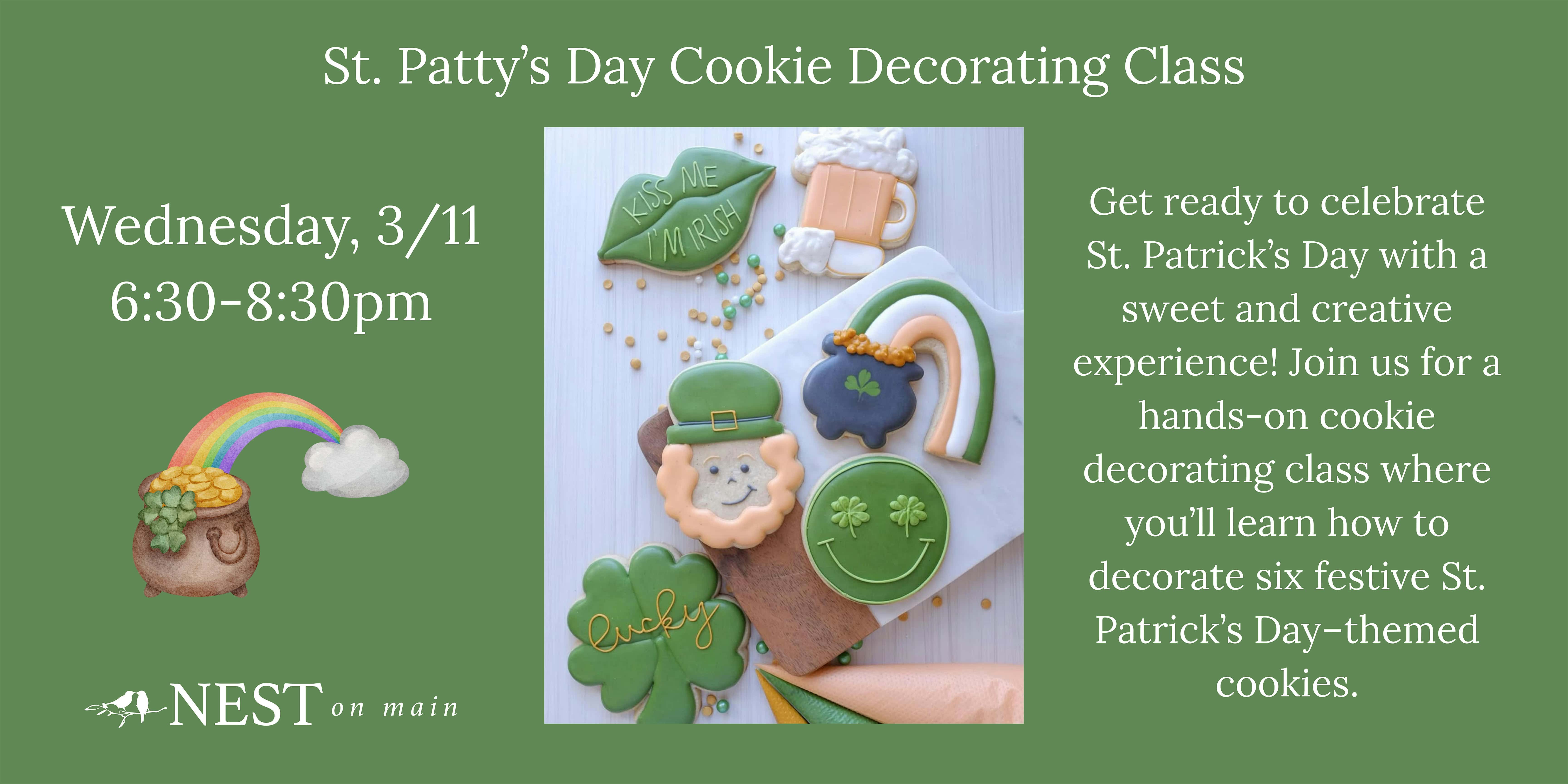 by admin14Feb St. Patty’s Day Cookie Decorating Class at Nest on Main – Northport, NY St. Patty’s Day Cookie Decorating Class at Nest on Main – Northport, NY 1 1 people viewed this event. Learn to create beautifully decorated St. Patty’s Day cookies with Paige of Procrastibaking by P! Tickets-RSVP Link Date And Time Wednesday, March 11th, 2026 10:00 PM (PST) Venue Nest on Main Location 135 Main Street, Northport, NY 11768 Event Types Food & Drink Event Category New York Share With Friends Facebook Twitter Linkedin Xing Pinterest Share This Post: