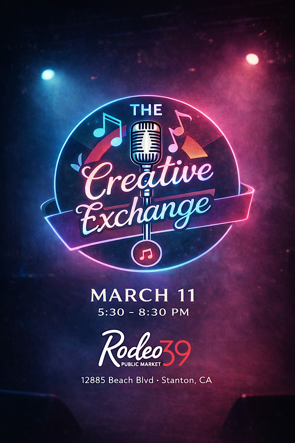 by admin27Feb The Creative Exchange at Rodeo 39 Public Market – Stanton, CA The Creative Exchange at Rodeo 39 Public Market – Stanton, CA 2 2 people viewed this event. A safe space to share your gifts, connect with other locals, enjoy live music in a family friendly environment with great food and drinks. Tickets-RSVP Link Date And Time Wednesday, March 11th, 2026 @ 05:00 PM Location 12885 Beach Boulevard, Stanton, CA 90680 Event Types Food & DrinkParty or Social Gathering Event Category California Share With Friends Facebook Twitter Linkedin Xing Pinterest Share This Post: