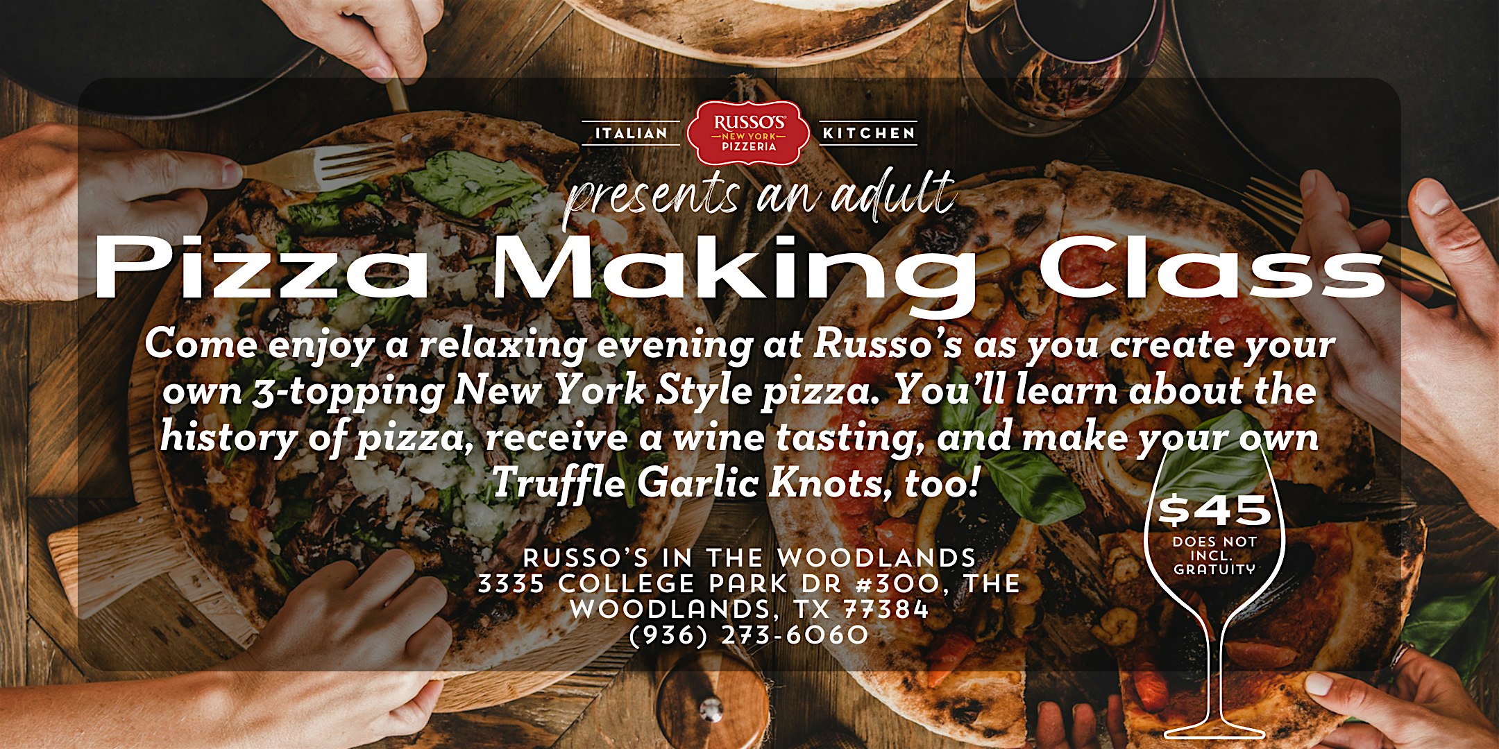 Adult Pizza Making Class and Wine Tasting March – Russo’s The Woodlands at Russo’s New York Pizzeria & Italian Kitchen – The Woodlands, TX