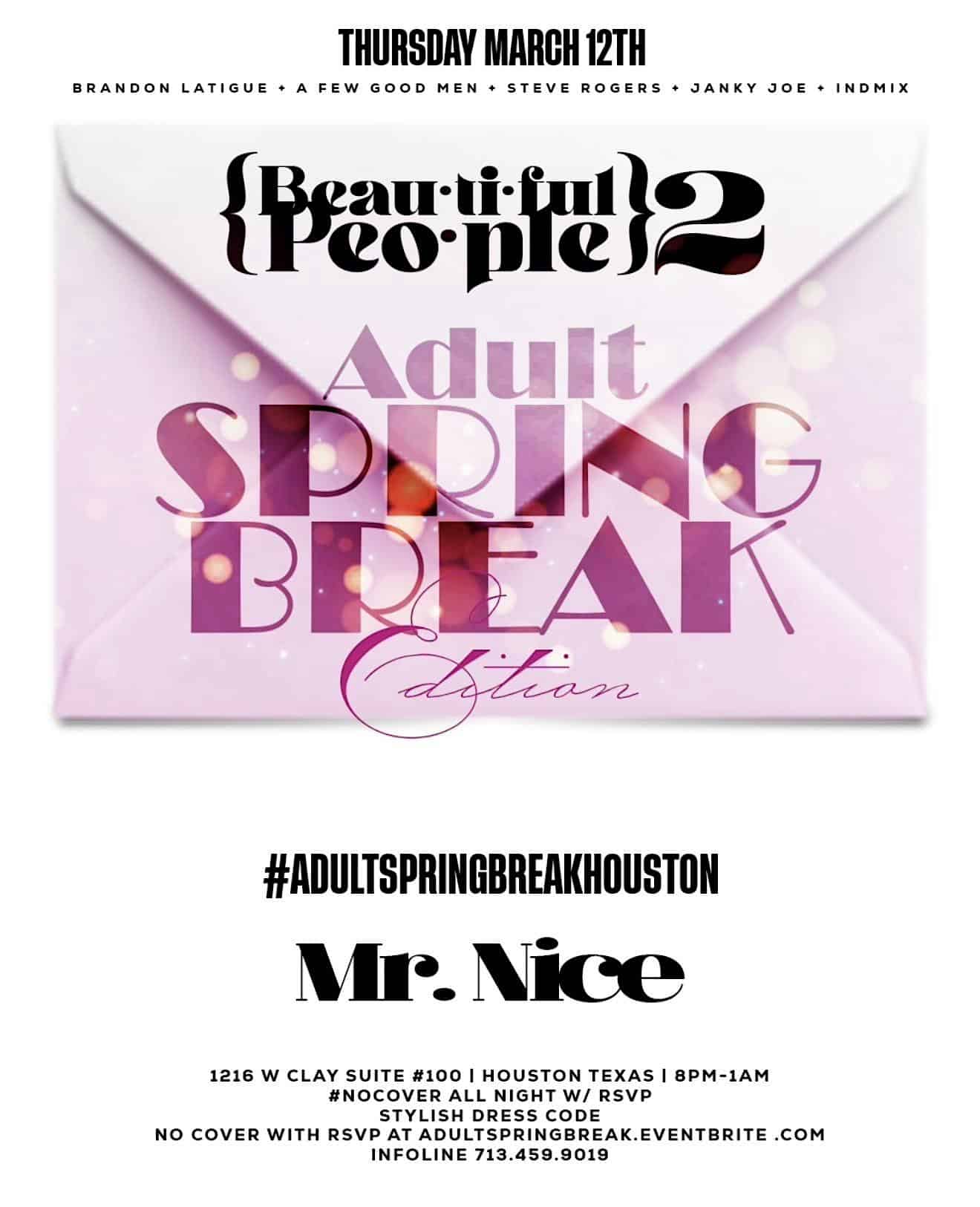by admin05Mar ADULT SPRING BREAK HOUSTON at Pour Behavior – Houston, TX ADULT SPRING BREAK HOUSTON at Pour Behavior – Houston, TX 2 2 people viewed this event. Adult Spring Break Getaway in Houston Texas Thursday March 12th to Sunday March 15th Tickets-RSVP Link Date And Time Thursday, March 12th, 2026 08:00 PM (PDT) Venue Pour Behavior Location 2211 Travis Street, Houston, TX 77002 Event Types MusicParty or Social Gathering Event Category HoustonTexas Share With Friends Facebook Twitter Linkedin Xing Pinterest Share This Post: