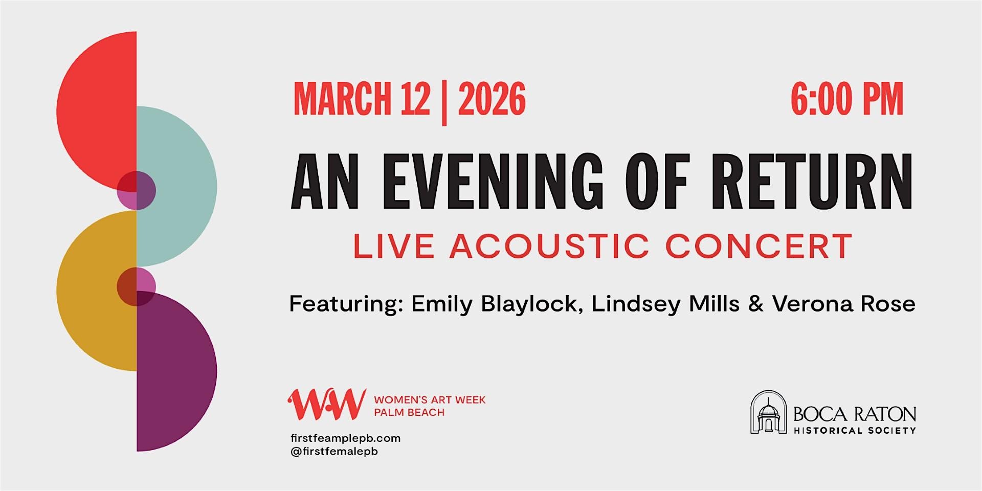 An Evening of Return: Live Acoustic Concert for Women’s Art Week at The Schmidt Boca Raton History Museum – Boca Raton, FL