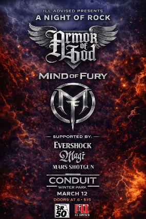 See Armor of God, Mind of Fury, Evershock, Magi, and Mars Shotgun Live in Winter Park on Thursday, March 12, 2026, Doors Open at 6:00 PM