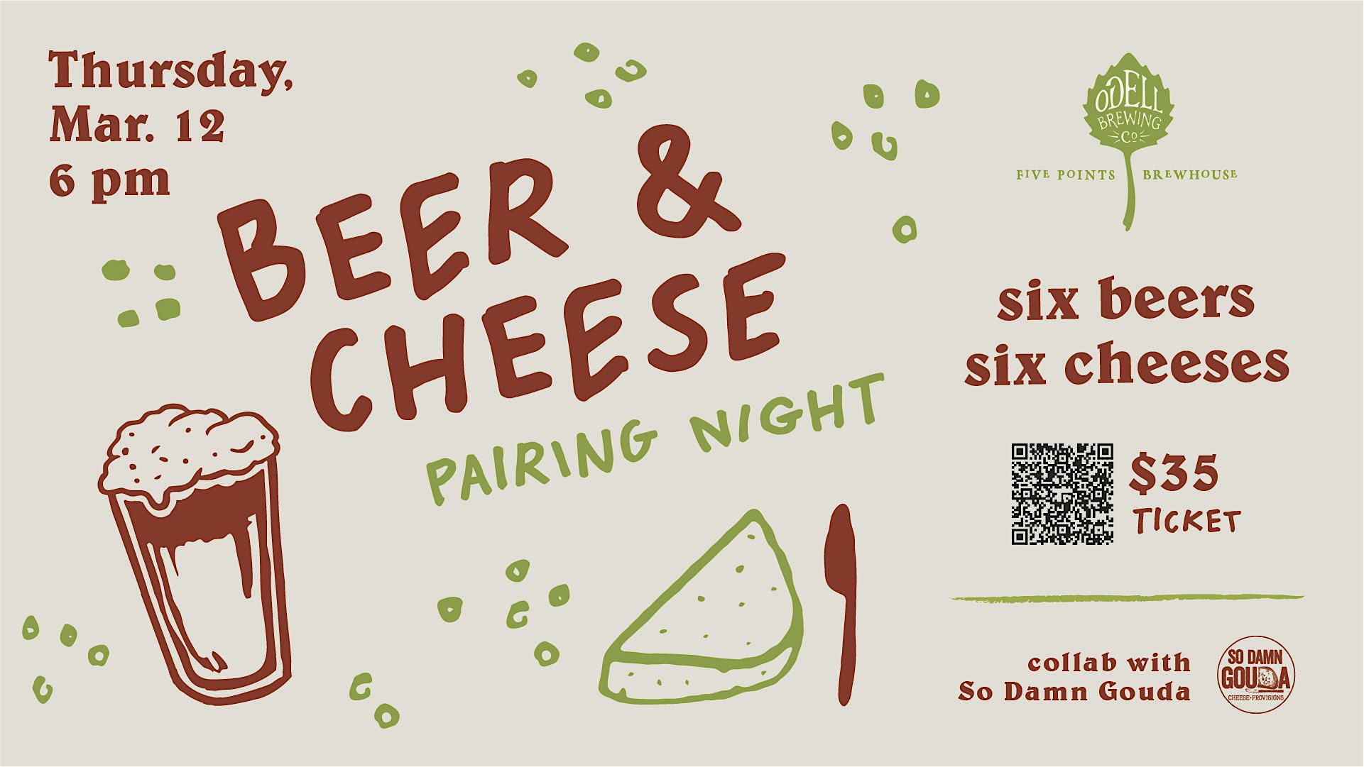by admin23Feb Beer and Cheese pairing with So Damn Gouda at Odell Brewing Five Points Brewhouse – Denver, CO Beer and Cheese pairing with So Damn Gouda at Odell Brewing Five Points Brewhouse – Denver, CO 3 3 people viewed this event. Get ready to indulge in a mouthwatering experience of beer and cheese pairing with So Damn Gouda! Tickets-RSVP Link Date And Time Thursday, March 12th, 2026 06:00 PM (PST) Venue Odell Brewing Five Points Brewhouse Location 2945 Larimer Street, Denver, CO 80205 Event Types Food & Drink Event Category ColoradoDenver Share With Friends Facebook Twitter Linkedin Xing Pinterest Share This Post: