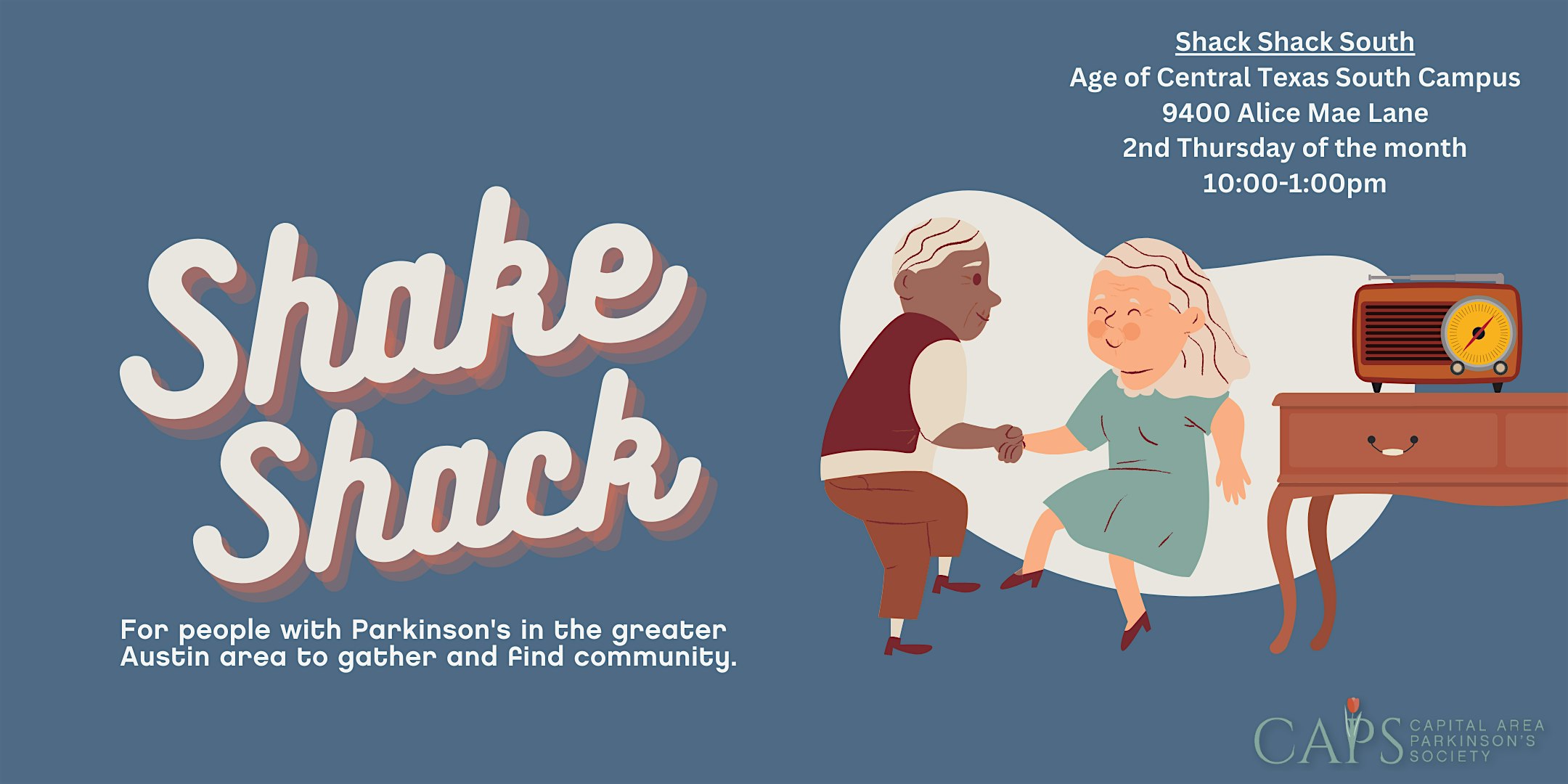 by admin27Feb C.A.P.S. Shake Shack South at AGE of Central Texas – South Campus – Austin, TX C.A.P.S. Shake Shack South at AGE of Central Texas – South Campus – Austin, TX 1 1 people viewed this event. Hope this works Tickets-RSVP Link Date And Time Thursday, March 12th, 2026 10:00 AM (PST) Venue AGE of Central Texas - South Campus Location 9400 Alice Mae Lane, Austin, TX 78748 Event Types Party or Social Gathering Event Category AustinTexas Share With Friends Facebook Twitter Linkedin Xing Pinterest Share This Post: