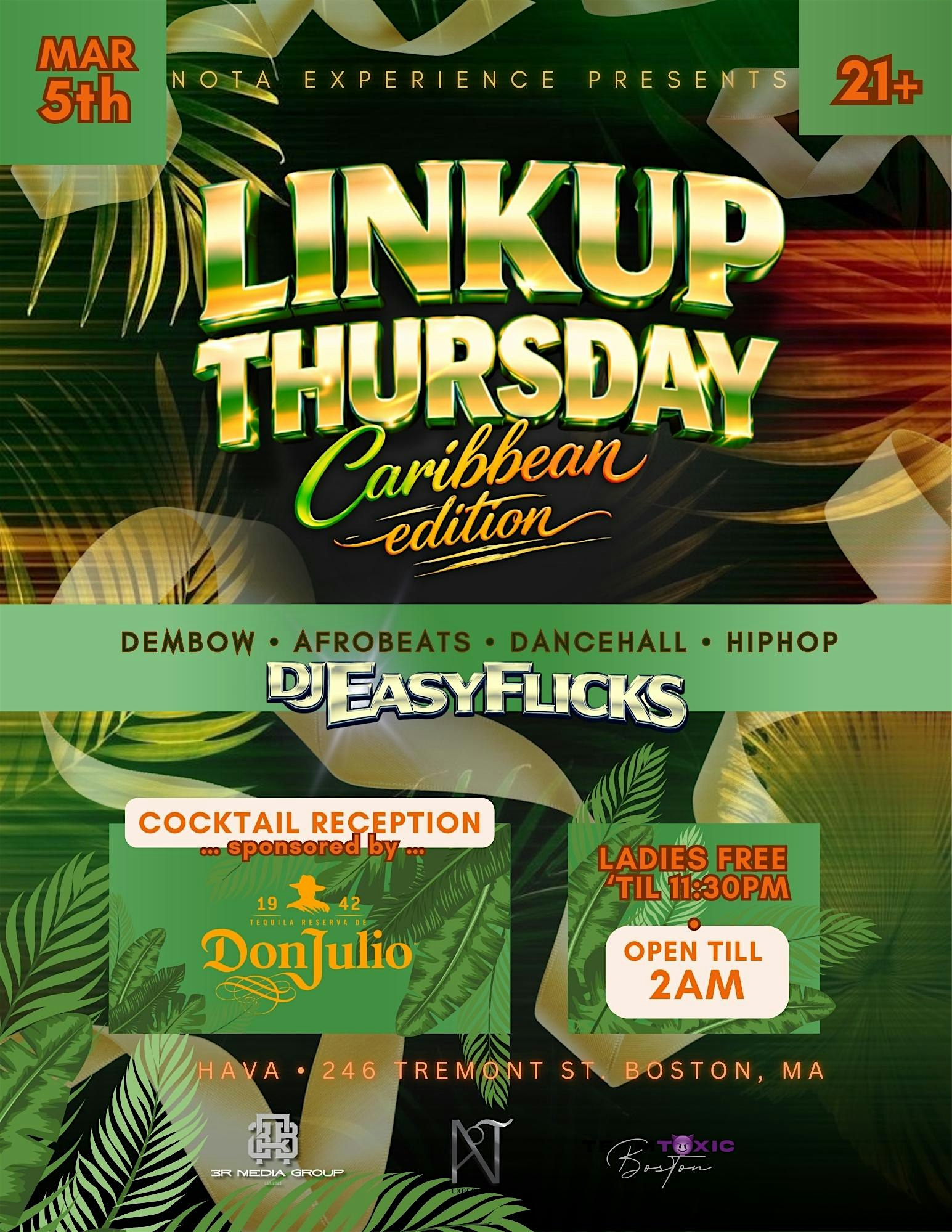 by admin05Mar LINK UP THURSDAYS at Hava Nightclub – Boston, MA LINK UP THURSDAYS at Hava Nightclub – Boston, MA 1 1 people viewed this event. Get ready to vibe and connect with amazing people at LINK UP THURSDAYS – it’s the perfect way to kick off the weekend! Tickets-RSVP Link Date And Time Thursday, March 12th, 2026 10:00 PM (PST) Venue Hava Nightclub Location 246 Tremont Street, Boston, MA 2116 Event Types MusicParty or Social Gathering Event Category BostonMassachusetts Share With Friends Facebook Twitter Linkedin Xing Pinterest Share This Post: