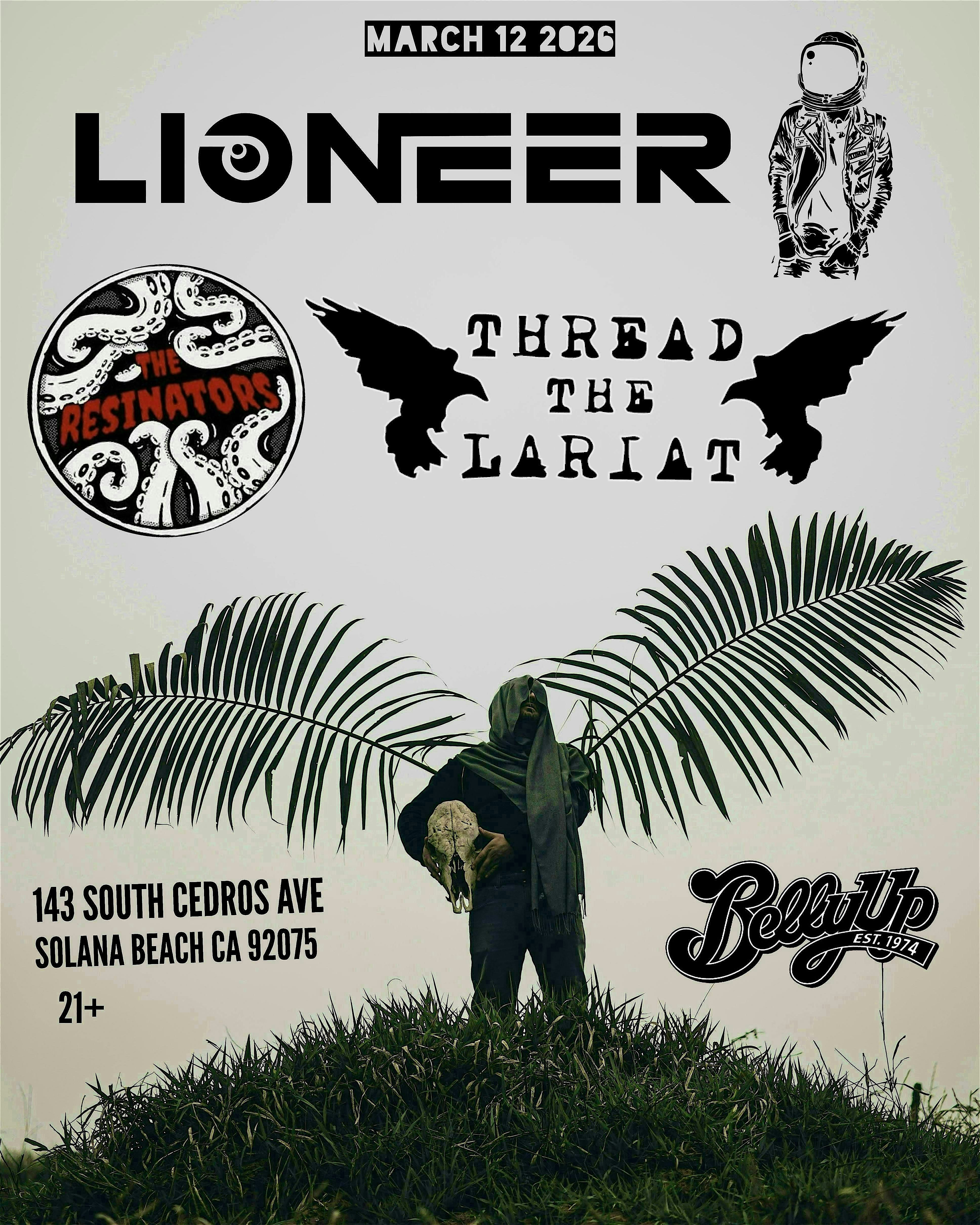 by admin23Feb Lioneer, Thread The Lariat and The Resinators at Belly Up Solana Beach at Belly Up Tavern – Solana Beach, CA Lioneer, Thread The Lariat and The Resinators at Belly Up Solana Beach at Belly Up Tavern – Solana Beach, CA 2 2 people viewed this event. March 12th 2026 6:30 PM at Belly Up – 143 South Cedros Ave Solana Beach CA 92075 Tickets-RSVP Link Date And Time Thursday, March 12th, 2026 06:00 PM (PST) Venue Belly Up Tavern Location 143 South Cedros Avenue, Solana Beach, CA 92075 Event Types Concert or PerformanceMusic Event Category CaliforniaSan Diego Share With Friends Facebook Twitter Linkedin Xing Pinterest Share This Post: