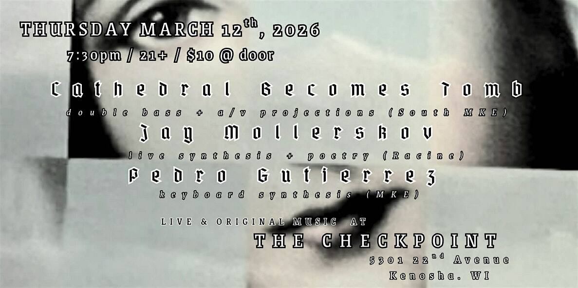 by admin23Feb Live & Original Music at The Checkpoint at The Checkpoint – Kenosha, WI Live & Original Music at The Checkpoint at The Checkpoint – Kenosha, WI 1 1 people viewed this event. Listen to live original music! Tickets-RSVP Link Date And Time Thursday, March 12th, 2026 07:00 PM (PST) Venue The Checkpoint Location 5301 22nd Avenue, Kenosha, WI 53140 Event Types Concert or PerformanceMusic Event Category Wisconsin Share With Friends Facebook Twitter Linkedin Xing Pinterest Share This Post: