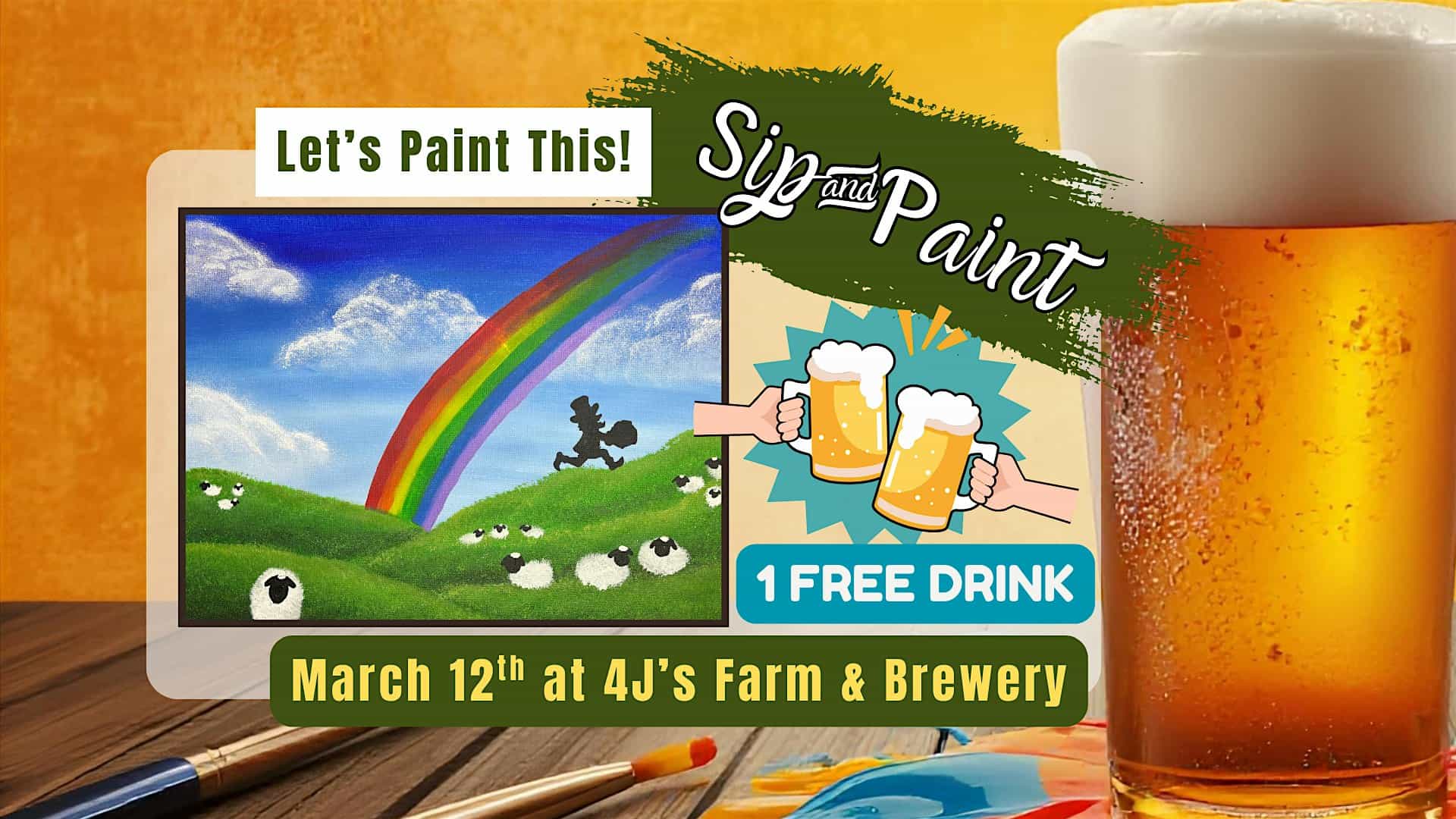by admin23Feb “Luck of the Irish” Sip & Paint at 4Js Farm & Brewery – Warrenton, VA “Luck of the Irish” Sip & Paint at 4Js Farm & Brewery – Warrenton, VA 1 1 people viewed this event. ✨ One FREE Drink with Each Ticket ✨ Get ready for a night of creativity and fun at our “Luck of the Irish” Sip & Paint event at 4J’s Far Tickets-RSVP Link Date And Time Thursday, March 12th, 2026 @ 06:00 PM Location 7595 Keith Road, Warrenton, VA 20186 Event Types Party or Social Gathering Event Category Virginia Share With Friends Facebook Twitter Linkedin Xing Pinterest Share This Post: