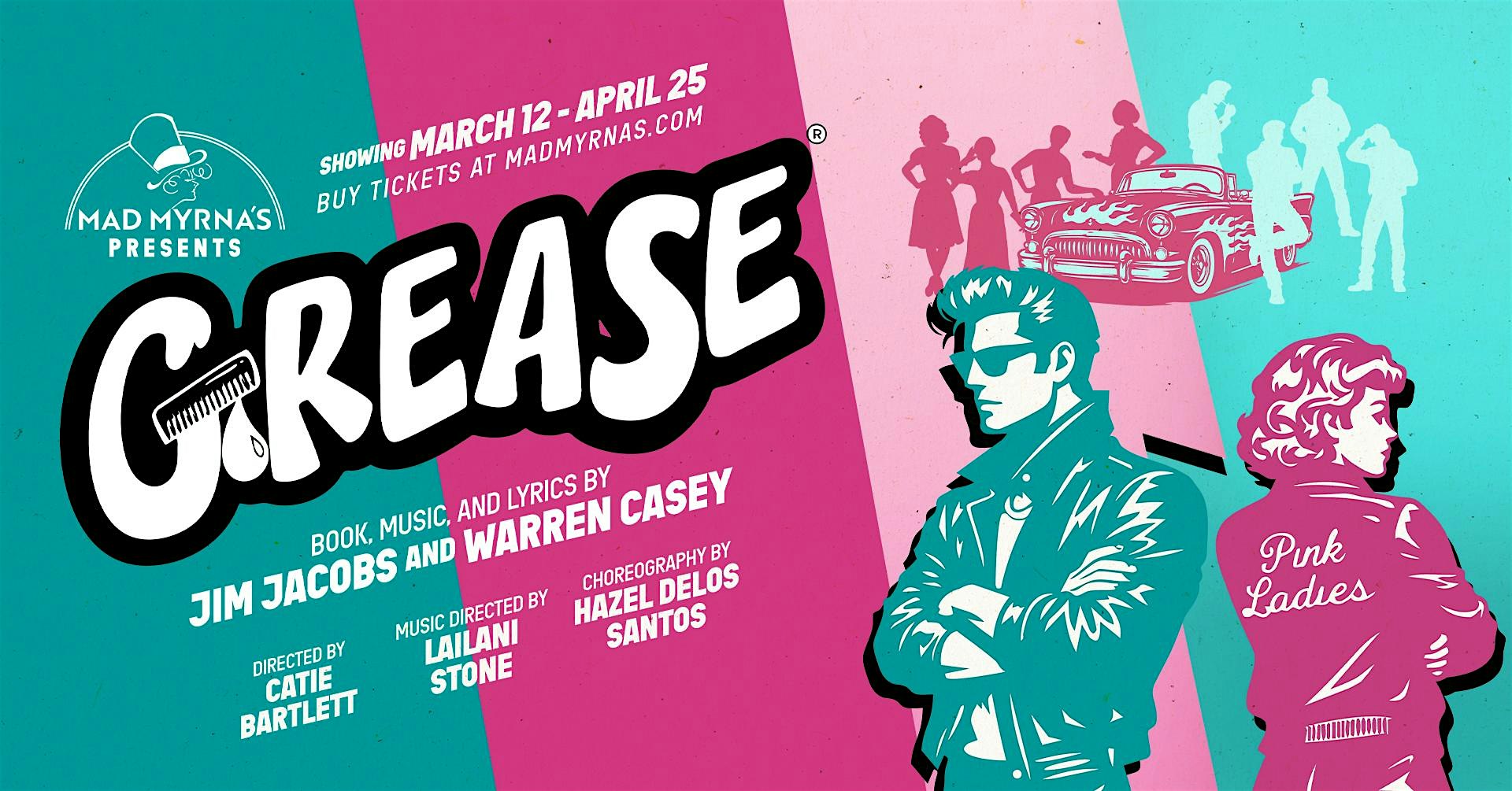 by admin05Mar Mad Myrna’s Presents Grease at Mad Myrna’s – Anchorage, AK Mad Myrna’s Presents Grease at Mad Myrna’s – Anchorage, AK 3 3 people viewed this event. Mad Myrna’s invites you to their production of the hit musical, “Grease”, book, music, and lyrics by Jim Jacobs and Warren Casey Tickets-RSVP Link Date And Time Thursday, March 12th, 2026 07:00 PM (PST) Venue Mad Myrna's Location 530 East 5th Avenue, Anchorage, AK 99501 Event Types Concert or PerformancePerforming & Visual Arts Event Category AlaskaAnchorage Share With Friends Facebook Twitter Linkedin Xing Pinterest Share This Post: