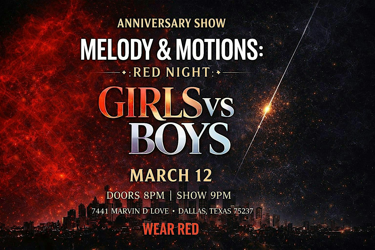 by admin05Mar Melody and Motions Concert Live at 360 E Belt Line Rd – DeSoto, TX Melody and Motions Concert Live at 360 E Belt Line Rd – DeSoto, TX 2 2 people viewed this event. Celebrate the anniversary of Melody & Motions with a high-energy night of live music! Featuring some of Dallas’ standout vocalist! Tickets-RSVP Link Date And Time Thursday, March 12th, 2026 08:00 PM (PST) Venue 360 E Belt Line Rd Location 360 East Belt Line Road, DeSoto, TX 75115 Event Types Concert or PerformancePerforming & Visual Arts Event Category Texas Share With Friends Facebook Twitter Linkedin Xing Pinterest Share This Post: