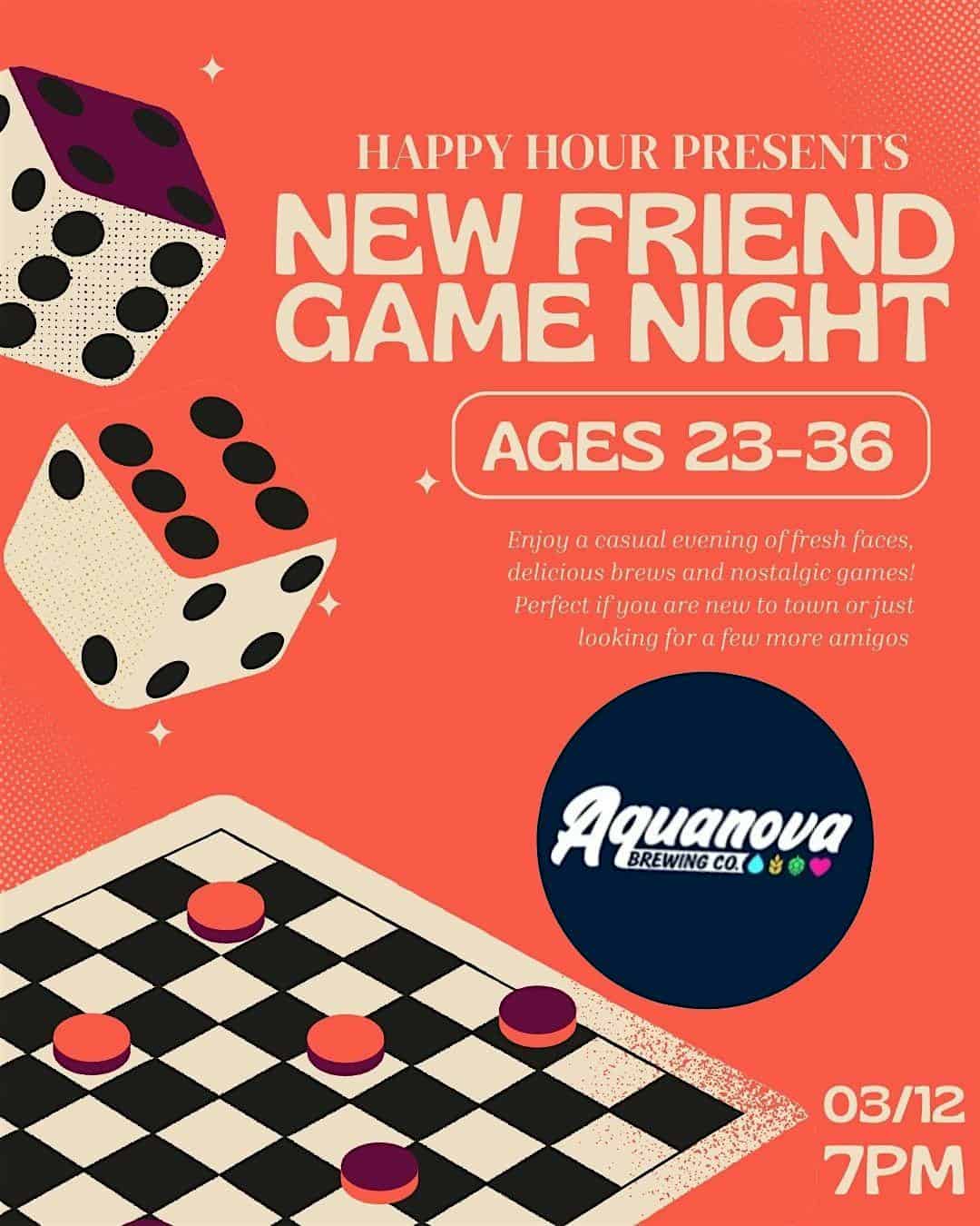 by admin14Feb New Friend Game Night Ages 23-36 @Aquanova Brewing Co.(Hamilton) at Aquanova Brewing Company – Hamilton, ON New Friend Game Night Ages 23-36 @Aquanova Brewing Co.(Hamilton) at Aquanova Brewing Company – Hamilton, ON 2 2 people viewed this event. Come enjoy nostalgic games, delicious brews and meet new people at Aquanova brewing – it’s gonna be a blast! Tickets-RSVP Link Date And Time Thursday, March 12th, 2026 11:00 PM (PST) Venue Aquanova Brewing Company Location 67 Frid Street, Hamilton, ON L8P 4M3 Event Types Food & DrinkParty or Social Gathering Event Category Missouri Share With Friends Facebook Twitter Linkedin Xing Pinterest Share This Post: