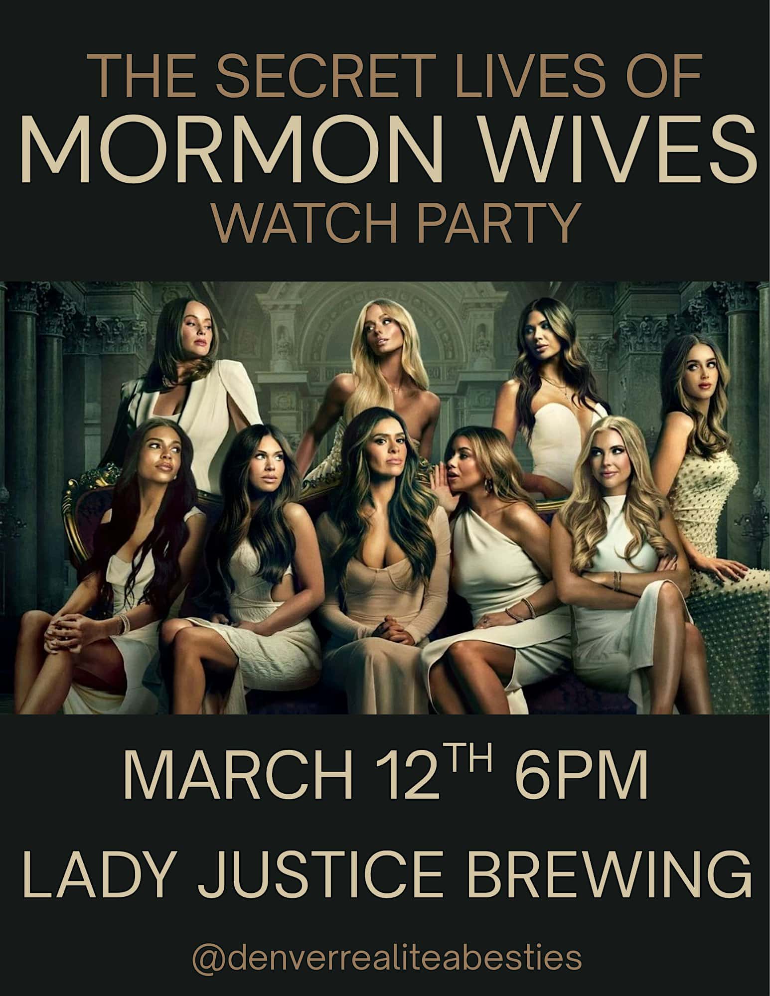 by admin23Feb Secret Lives of Mormon Wives Season 4 Premiere Watch Party! at Lady Justice Brewing Company – Englewood, CO Secret Lives of Mormon Wives Season 4 Premiere Watch Party! at Lady Justice Brewing Company – Englewood, CO 4 4 people viewed this event. Can there be more secrets? Come watch with us! Tickets-RSVP Link Date And Time Thursday, March 12th, 2026 @ 06:00 PM Location 3242 South Acoma Street, Englewood, CO 80110 Event Types Film, Media & EntertainmentParty or Social Gathering Event Category ColoradoDenver Share With Friends Facebook Twitter Linkedin Xing Pinterest Share This Post: