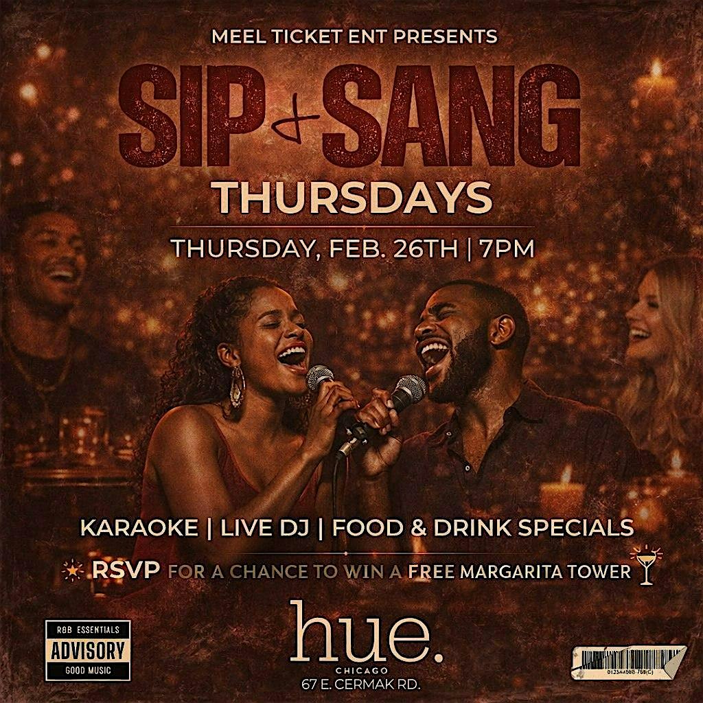 by admin27Feb SIP & SANG THURSDAYS @ HUE at Hue Chicago – Chicago, IL SIP & SANG THURSDAYS @ HUE at Hue Chicago – Chicago, IL 2 2 people viewed this event. Grab the mic, sip something smooth, and show out at Sip & Sing. Thursdays @ Hue Chicago! Tickets-RSVP Link Date And Time Thursday, March 12th, 2026 @ 07:00 PM Location 67 East Cermak Road, Chicago, IL 60616 Event Types Food & DrinkParty or Social Gathering Event Category ChicagoIllinois Share With Friends Facebook Twitter Linkedin Xing Pinterest Share This Post: