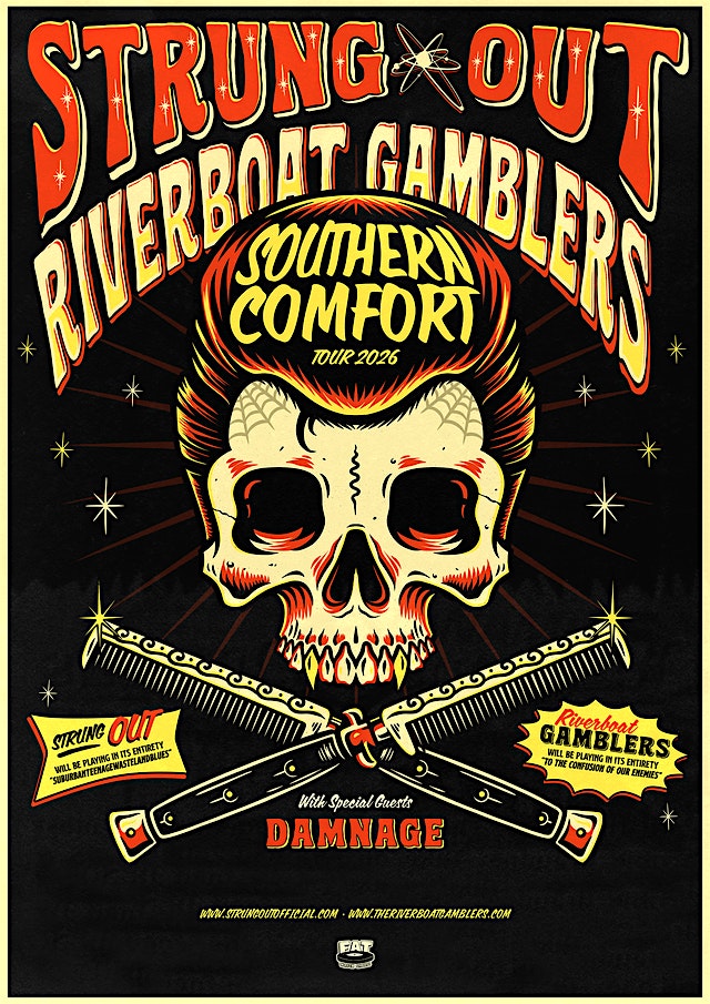 by admin13Feb STRUNG OUT + THE RIVERBOAT GAMBLERS at the BUNKER VIRGINIA BEACH! at Bunker Brewpub – Virginia Beach, VA STRUNG OUT + THE RIVERBOAT GAMBLERS at the BUNKER VIRGINIA BEACH! at Bunker Brewpub – Virginia Beach, VA 1 1 people viewed this event. Fat Wreck + 151 Shows presents- STRUNG OUT + THE RIVERBOAT GAMBLERS special co – headline tour! Tickets-RSVP Link Date And Time Thursday, March 12th, 2026 11:00 PM (PST) Venue Bunker Brewpub Location 211 21st St., Virginia Beach, VA 23451 Event Types Concert or PerformanceMusic Event Category VirginiaVirginia Beach Share With Friends Facebook Twitter Linkedin Xing Pinterest Share This Post: