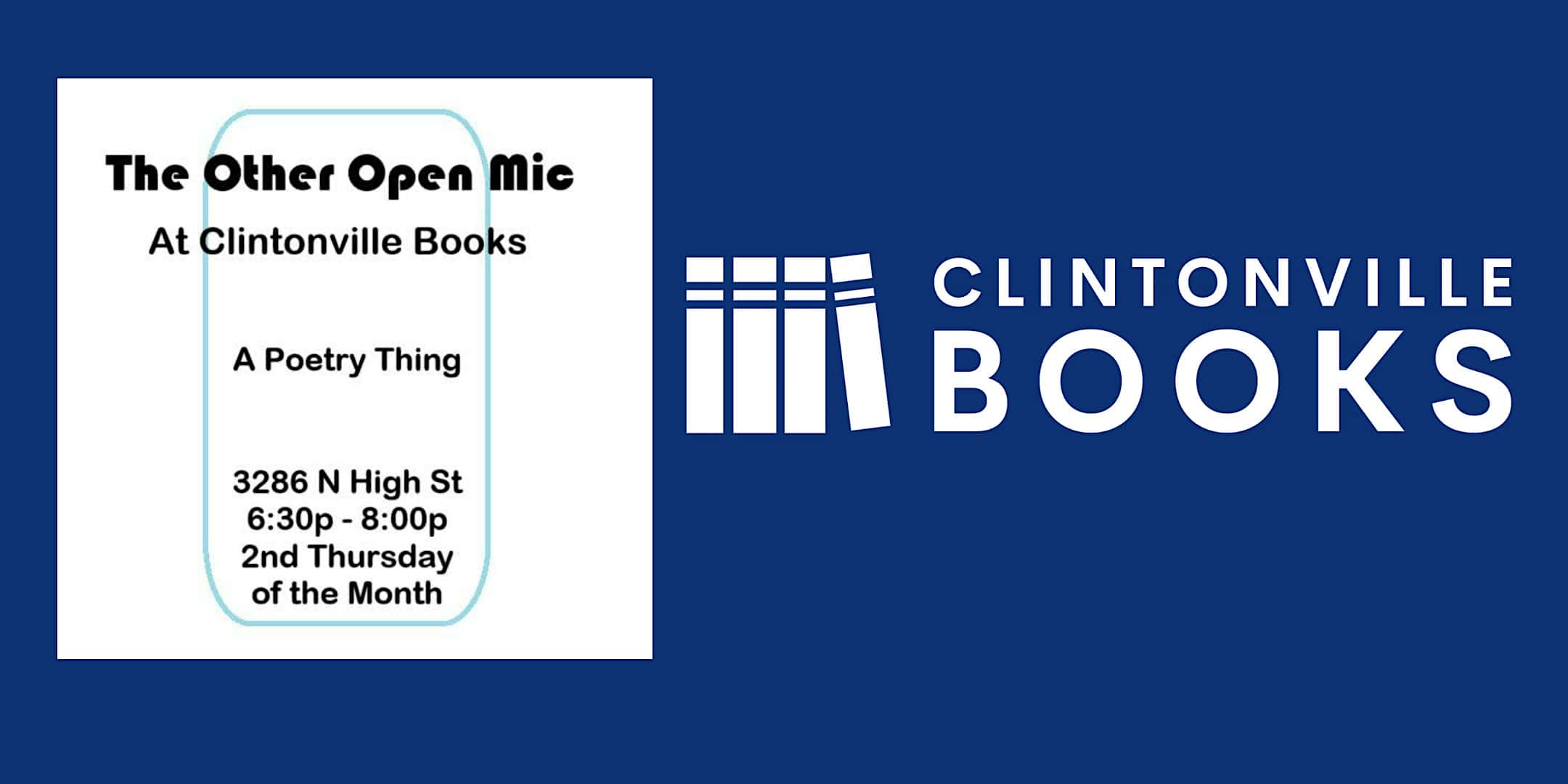 by admin14Feb The Other Open Mic: A Poetry Thing at Clintonville Books at Clintonville Books – Columbus, OH The Other Open Mic: A Poetry Thing at Clintonville Books at Clintonville Books – Columbus, OH 2 2 people viewed this event. Feeling poetic? Join us for The Other Open Mic: A Poetry Thing at Clintonville Books, every second Thursday of the month from 6:30 – 8:00 Tickets-RSVP Link Date And Time Thursday, March 12th, 2026 10:00 PM (PST) Venue Clintonville Books Location 3286 North High Street, Columbus, OH 43202 Event Types Concert or PerformancePerforming & Visual Arts Event Category Ohio Share With Friends Facebook Twitter Linkedin Xing Pinterest Share This Post: