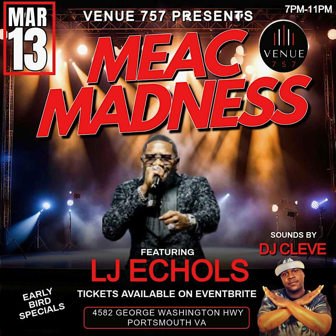by admin13Feb 2026 MEAC MADNESS SOUTHERN SOUL/TRAIL RIDE EXTRAVAGENZA at Venue 757 – Portsmouth, VA 2026 MEAC MADNESS SOUTHERN SOUL/TRAIL RIDE EXTRAVAGENZA at Venue 757 – Portsmouth, VA 2 2 people viewed this event. Experience live performances by SOUTHERN SOUL phenomenon LJ ECHOLS and enjoy the TRAIL RIDE vibe with DJ CLEAVE spinning the hottest tracks! Tickets-RSVP Link Date And Time Friday, March 13th, 2026 11:00 PM (PST) Venue Venue 757 Location 4582 George Washington Highway, Portsmouth, VA 23702 Event Types Concert or PerformanceMusic Event Category NorfolkVirginia Share With Friends Facebook Twitter Linkedin Xing Pinterest Share This Post: