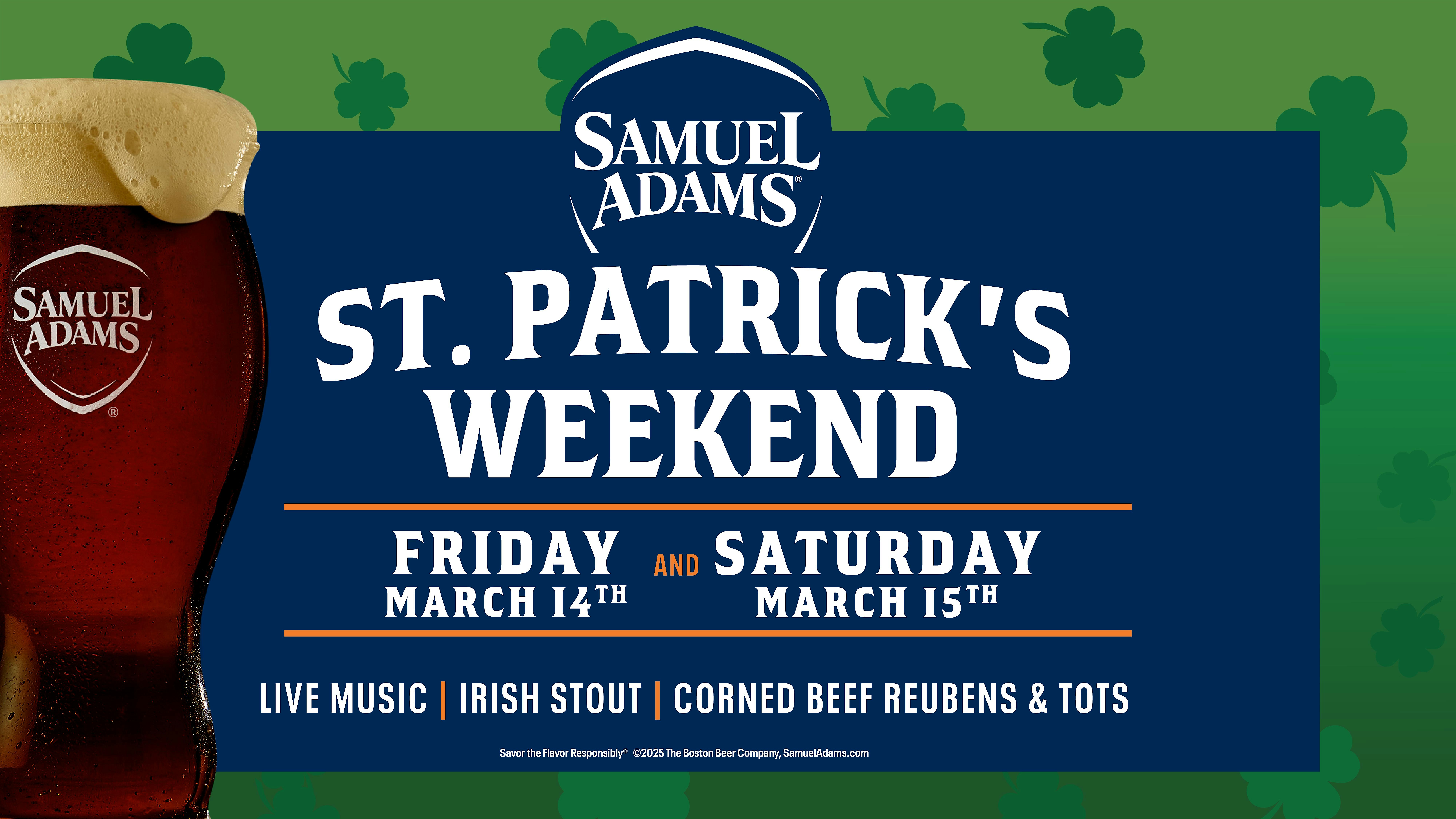 by admin24Feb 2026 St. Patrick’s Weekend at Sam Adams Downtown – NO COVER! at Sam Adams Downtown Boston Taproom – Boston, MA 2026 St. Patrick’s Weekend at Sam Adams Downtown – NO COVER! at Sam Adams Downtown Boston Taproom – Boston, MA 2 2 people viewed this event. Join us for Live Music, Irish Stouts, Food Specials and more to ring in St. Patrick’s Weekend – Sláinte! Tickets-RSVP Link Date And Time Friday, March 13th, 2026 06:00 PM (PST) Venue Sam Adams Downtown Boston Taproom Location 60 State Street, Boston, MA 2109 Event Types Party or Social GatheringSeasonal & Holiday Event Category BostonMassachusetts Share With Friends Facebook Twitter Linkedin Xing Pinterest Share This Post: