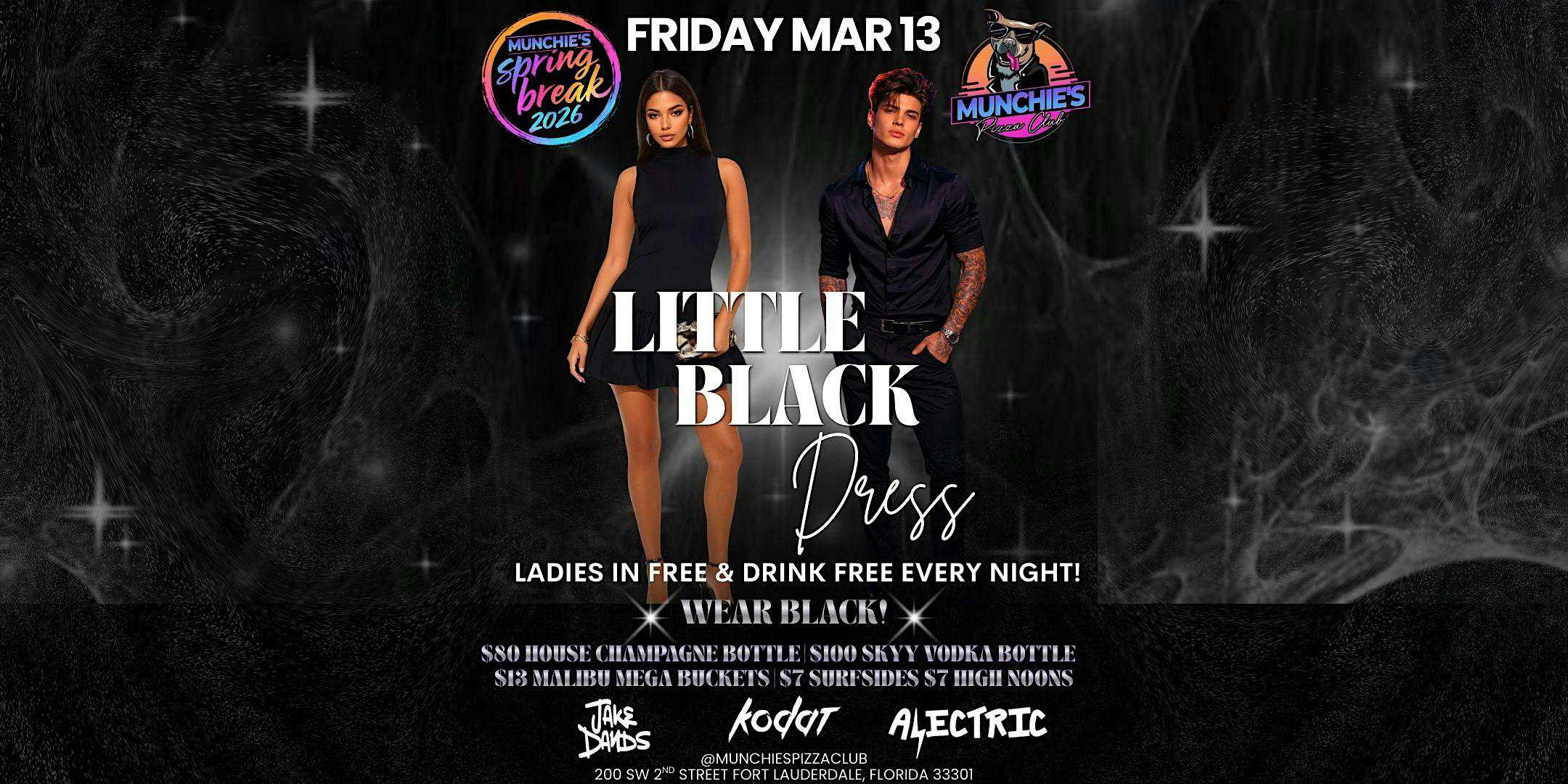 by admin23Feb 3/13- LITTLE BLACK DRESS- SPRING BREAK 2026 @ MUNCHIE’S at Munchie’s Pizza Club – Fort Lauderdale, FL 3/13- LITTLE BLACK DRESS- SPRING BREAK 2026 @ MUNCHIE’S at Munchie’s Pizza Club – Fort Lauderdale, FL 2 2 people viewed this event. The ultimate Spring Break destination in downtown Fort Lauderdale! Tickets-RSVP Link Date And Time Friday, March 13th, 2026 09:00 PM (PST) Venue Munchie's Pizza Club Location 200 Southwest 2nd Street, Fort Lauderdale, FL 33301 Event Types MusicParty or Social Gathering Event Category FloridaFt Lauderdale Share With Friends Facebook Twitter Linkedin Xing Pinterest Share This Post: