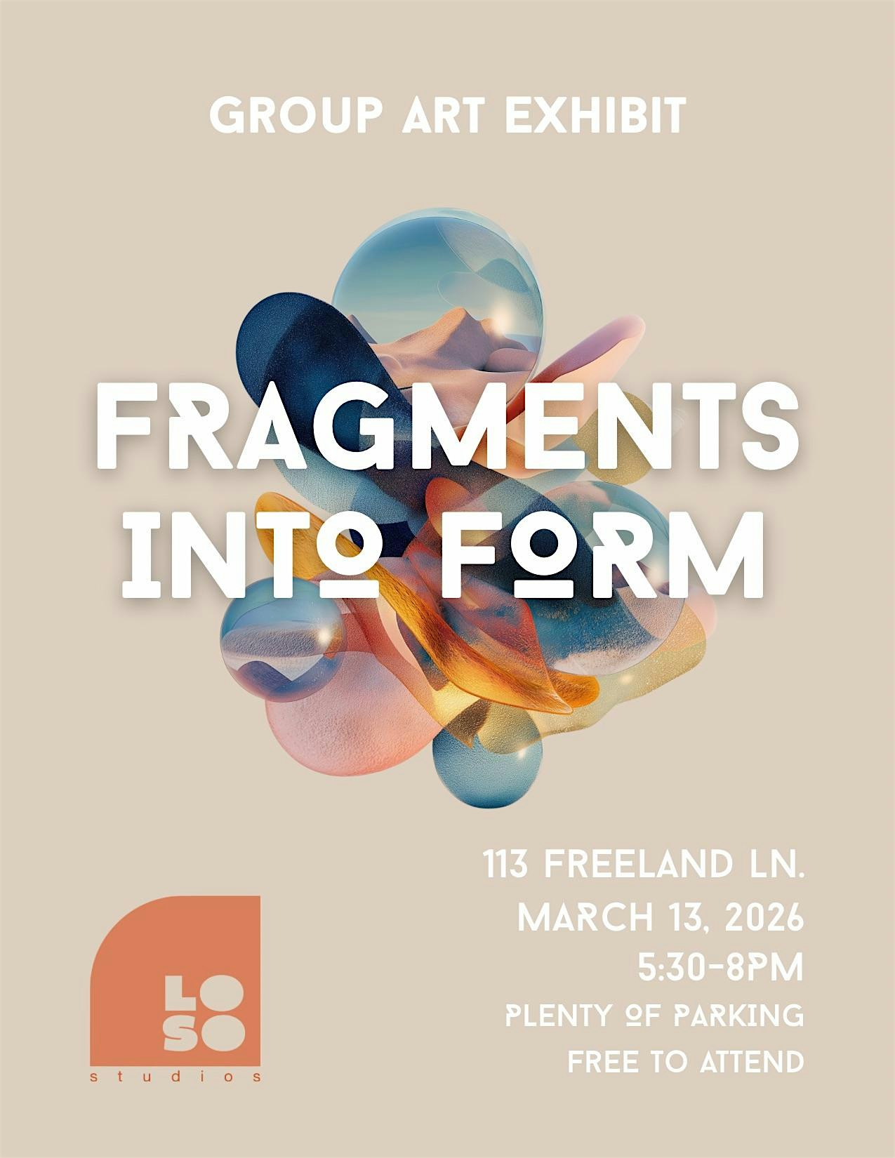 by admin27Feb Art Reception and Exhibit: Fragments Into Form at LOSO Studios – Charlotte, NC Art Reception and Exhibit: Fragments Into Form at LOSO Studios – Charlotte, NC 1 1 people viewed this event. Free Art Exhibit in Lower South End, Charlotte! View and shop local art, meet artists, enjoy a family-and-pet friendly environment! Tickets-RSVP Link Date And Time Friday, March 13th, 2026 @ 05:00 PM Location 113 Freeland Lane, Charlotte, NC 28217 Event Types Party or Social GatheringPerforming & Visual Arts Event Category CharlotteNorth Carolina Share With Friends Facebook Twitter Linkedin Xing Pinterest Share This Post: