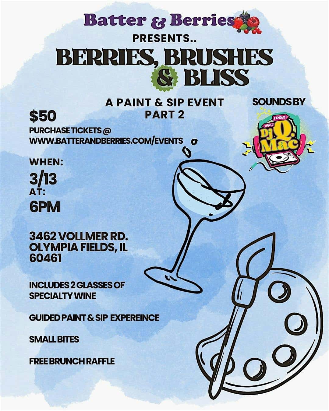 by admin14Feb Batter and Berries Paint & SIP at Batter & Berries South Suburbs – Olympia Fields, IL Batter and Berries Paint & SIP at Batter & Berries South Suburbs – Olympia Fields, IL 1 1 people viewed this event. Join us for a fun and creative evening of painting, sipping on drinks, and enjoying delicious batter and berries treats! Tickets-RSVP Link Date And Time Friday, March 13th, 2026 11:00 PM (PST) Venue Batter & Berries South Suburbs Location 3462 Vollmer Road, Olympia Fields, IL 60461 Event Types Food & Drink Event Category Illinois Share With Friends Facebook Twitter Linkedin Xing Pinterest Share This Post: