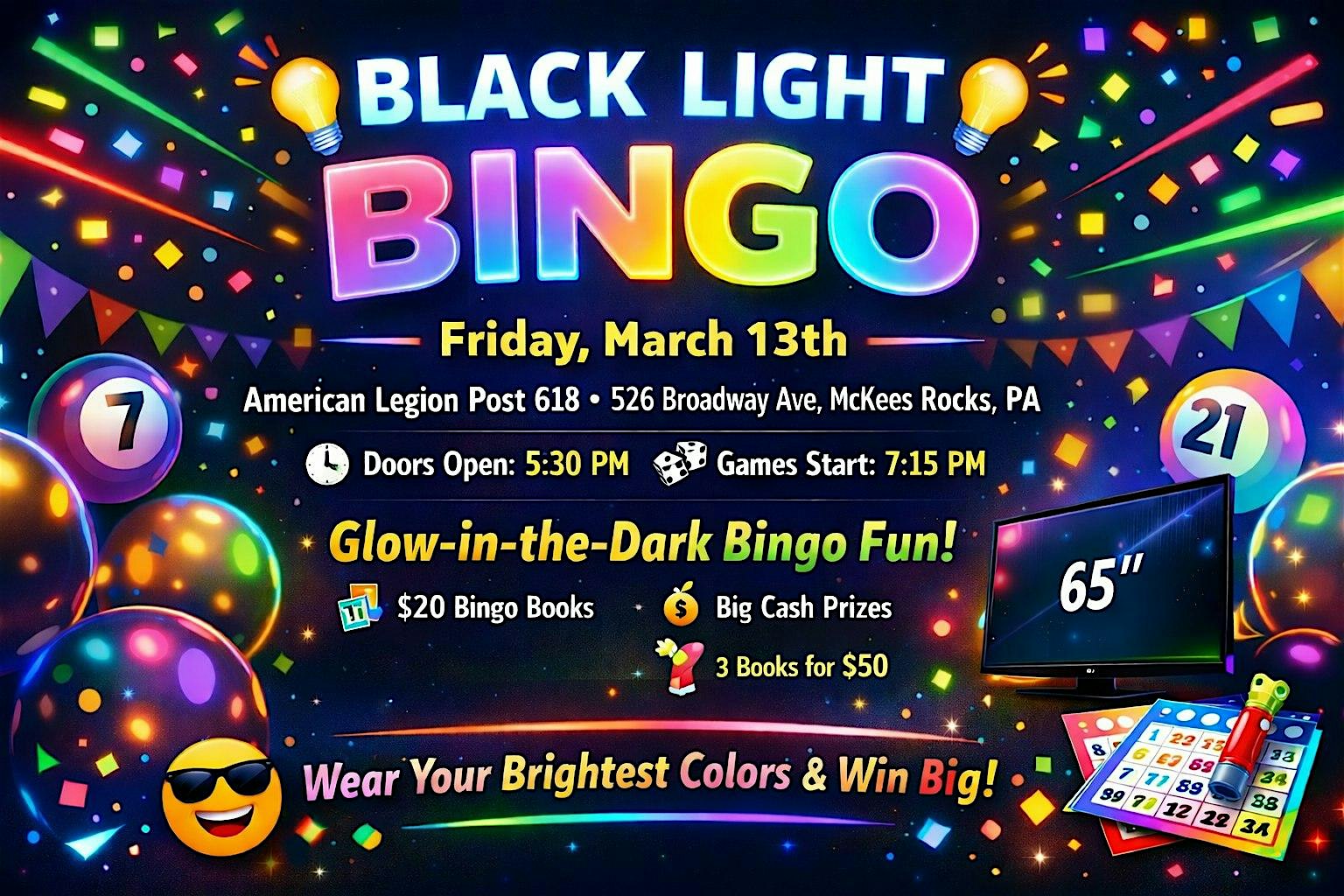 by admin23Feb Black Light Bingo at the American Legion at 526 Broadway Avenue, McKees Rocks, PA, USA – McKees Rocks, PA Black Light Bingo at the American Legion at 526 Broadway Avenue, McKees Rocks, PA, USA – McKees Rocks, PA 3 3 people viewed this event. Join us for Bingo at the Legion located at 526 Broadway Ave, McKees Rocks PA 15136. No membership is required. Tickets-RSVP Link Date And Time Friday, March 13th, 2026 05:00 PM (PST) Venue 526 Broadway Avenue, McKees Rocks, PA, USA Location 526 Broadway Avenue, McKees Rocks, PA 15136 Event Types Community & CultureParty or Social Gathering Event Category PennsylvaniaPittsburgh Share With Friends Facebook Twitter Linkedin Xing Pinterest Share This Post: