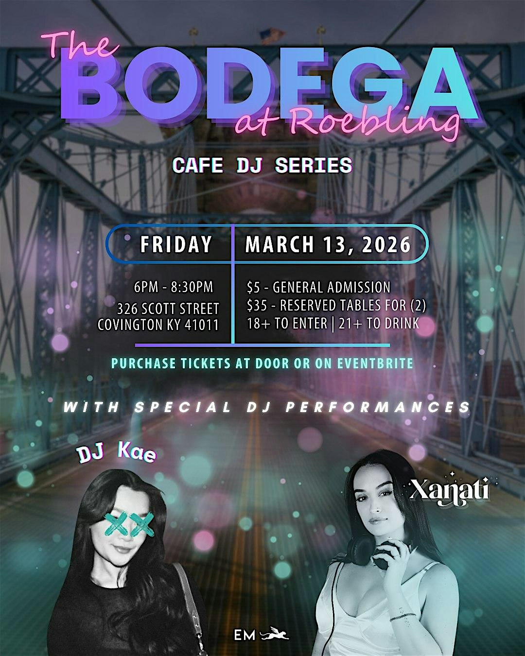 by admin27Feb Bodega Cafe DJ Series at 326 Scott St – Covington, KY Bodega Cafe DJ Series at 326 Scott St – Covington, KY 1 1 people viewed this event. Get ready to vibe all night with the hottest beats at Bodega Cafe DJ Series—live, loud, and unforgettable! Tickets-RSVP Link Date And Time Friday, March 13th, 2026 06:00 PM (PST) Venue 326 Scott St Location 326 Scott Street, Covington, KY 41011 Event Types Concert or PerformanceMusic Event Category Kentucky Share With Friends Facebook Twitter Linkedin Xing Pinterest Share This Post: