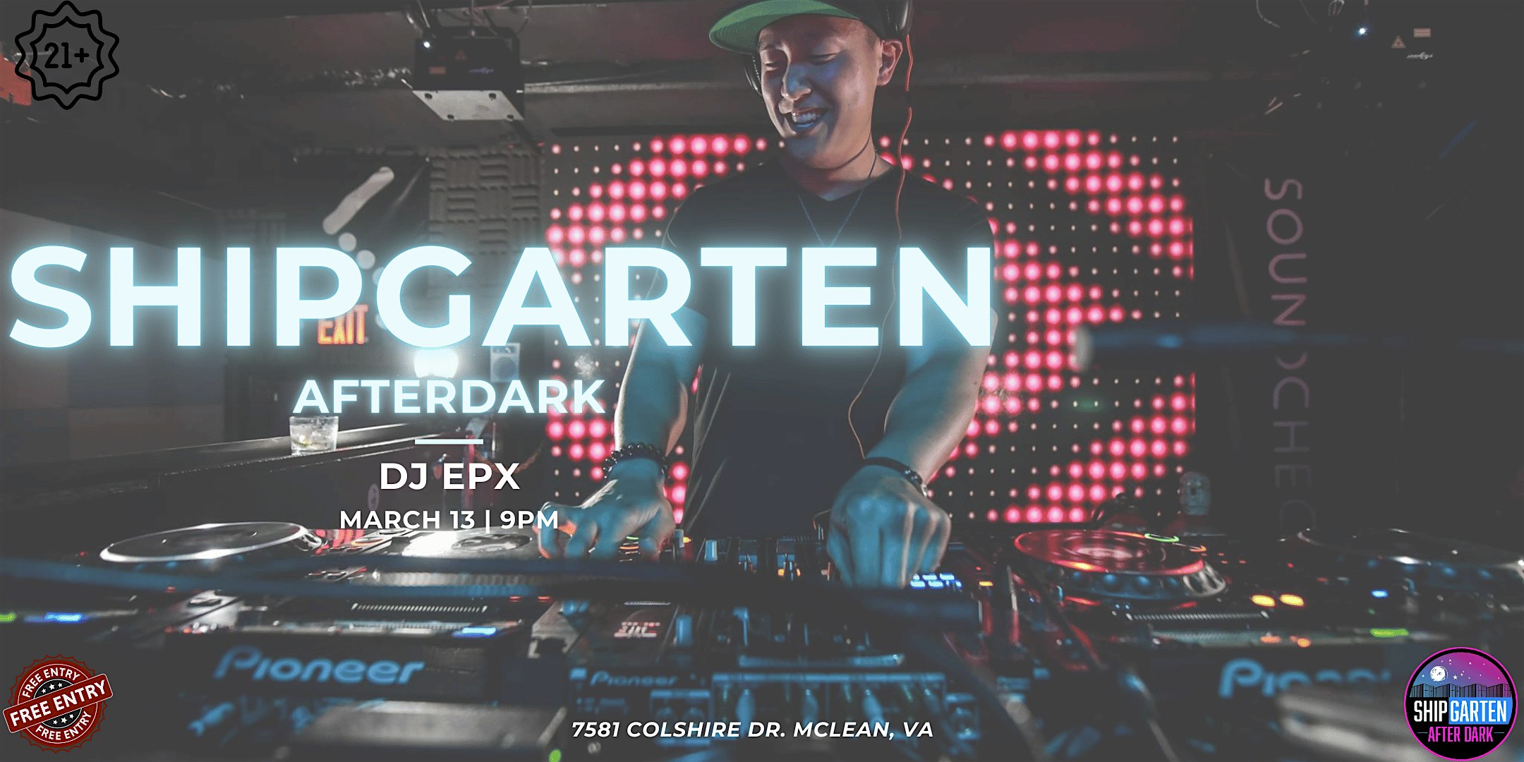 by admin27Feb DJ EPX for Shipgarten After Dark at 7581 Colshire Dr – Tysons, VA DJ EPX for Shipgarten After Dark at 7581 Colshire Dr – Tysons, VA 1 1 people viewed this event. When the sun goes down, Shipgarten turns up! Tickets-RSVP Link Date And Time Friday, March 13th, 2026 09:00 PM (PST) Venue 7581 Colshire Dr Location 7581 Colshire Drive, Tysons, VA 22102 Event Types Concert or PerformanceMusic Event Category Virginia Share With Friends Facebook Twitter Linkedin Xing Pinterest Share This Post:
