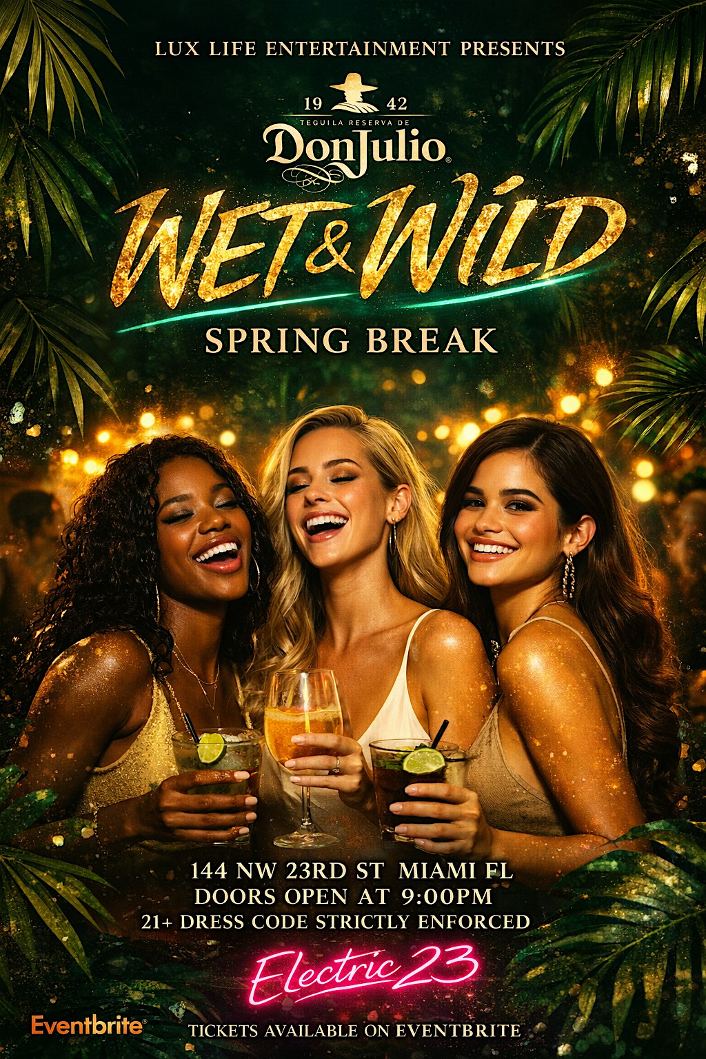 by admin23Feb DON JULIO PRESENTS: WET & WILD SPRING BREAK (DON JULIO OPEN BAR) at Electric 23 Wynwood – Miami, FL DON JULIO PRESENTS: WET & WILD SPRING BREAK (DON JULIO OPEN BAR) at Electric 23 Wynwood – Miami, FL 2 2 people viewed this event. Get Ready to Get Wet & Wild and Have Miami’s Ultimate Nightclub Experience ! Tickets-RSVP Link Date And Time Friday, March 13th, 2026 09:00 PM (PST) Venue Electric 23 Wynwood Location 144 Northwest 23rd Street, Miami, FL 33127 Event Types Food & DrinkParty or Social Gathering Event Category FloridaMiami Share With Friends Facebook Twitter Linkedin Xing Pinterest Share This Post: