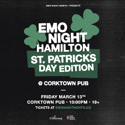 See Emo Night Hamilton: St. Patrick’s Day Edition at Corktown – Mar 13 2026 Live in Hamilton on Friday, March 13, 2026, Doors Open at 10:00 PM