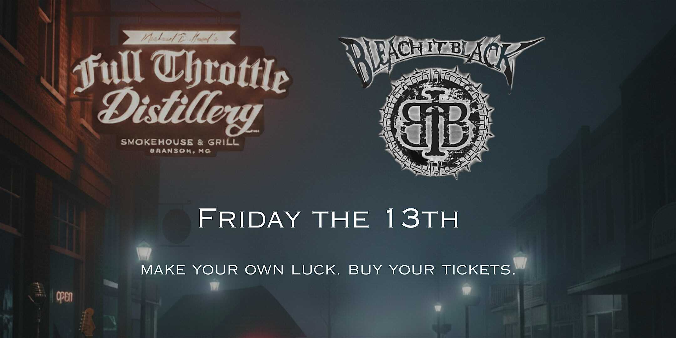 by admin23Feb Friday the 13th at Full Throttle Loud and Live at 116 E Main St – Branson, MO Friday the 13th at Full Throttle Loud and Live at 116 E Main St – Branson, MO 3 3 people viewed this event. Superstition meets straight-up rock chaos at Full Throttle this Friday the 13th Bleached in Black is taking the stage. Giveaways and more! Tickets-RSVP Link Date And Time Friday, March 13th, 2026 08:00 PM (PST) Venue 116 E Main St Location 116 East Main Street, Branson, MO 65616 Event Types Concert or PerformanceMusic Event Category BransonMissouri Share With Friends Facebook Twitter Linkedin Xing Pinterest Share This Post: