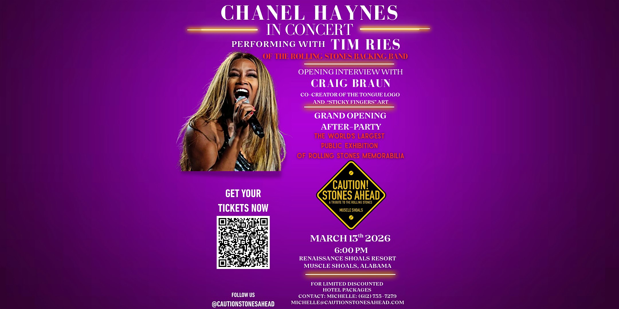 by admin13Feb GRAND OPENING & CONCERT FOR CAUTION! STONES AHEAD at Renaissance Shoals Resort & Spa – Florence, AL GRAND OPENING & CONCERT FOR CAUTION! STONES AHEAD at Renaissance Shoals Resort & Spa – Florence, AL 1 1 people viewed this event. GRAND OPENING: Concert featuring members of Rolling Stones backing band, interview with Craig Braun, museum ribbon-cutting & after-party. Tickets-RSVP Link Date And Time Friday, March 13th, 2026 10:00 PM (PST) Venue Renaissance Shoals Resort & Spa Location 10 Hightower Place, Florence, AL 35630 Event Types Concert or PerformanceMusic Event Category Alabama Share With Friends Facebook Twitter Linkedin Xing Pinterest Share This Post: