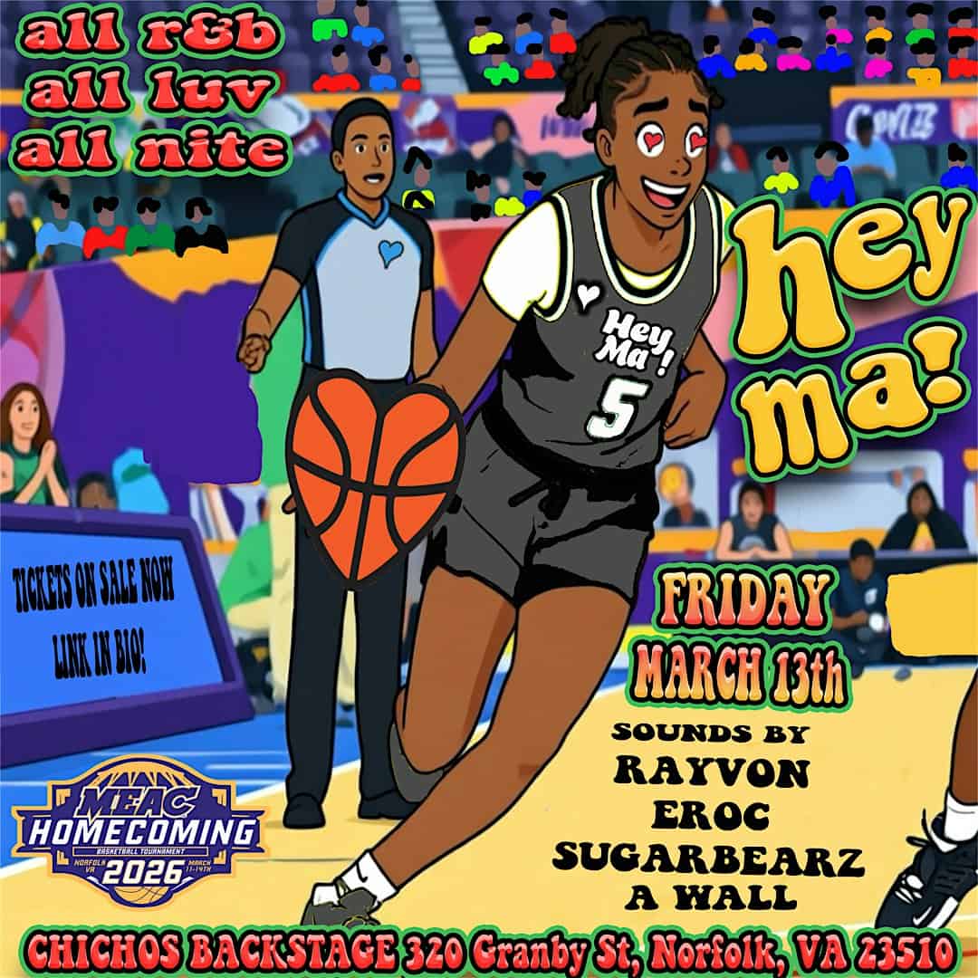 by admin23Feb HeyMa Al Rnb All Luv All Nite Meac Weekend at Chicho’s Backstage – Norfolk, VA HeyMa Al Rnb All Luv All Nite Meac Weekend at Chicho’s Backstage – Norfolk, VA 1 1 people viewed this event. Get ready to vibe all night long with the smoothest RnB jams and good vibes at Meac Weekend! Tickets-RSVP Link Date And Time Friday, March 13th, 2026 10:00 PM (PST) Venue Chicho's Backstage Location 320 Granby Street, Norfolk, VA 23510 Event Types Concert or PerformanceMusic Event Category NorfolkVirginia Share With Friends Facebook Twitter Linkedin Xing Pinterest Share This Post: