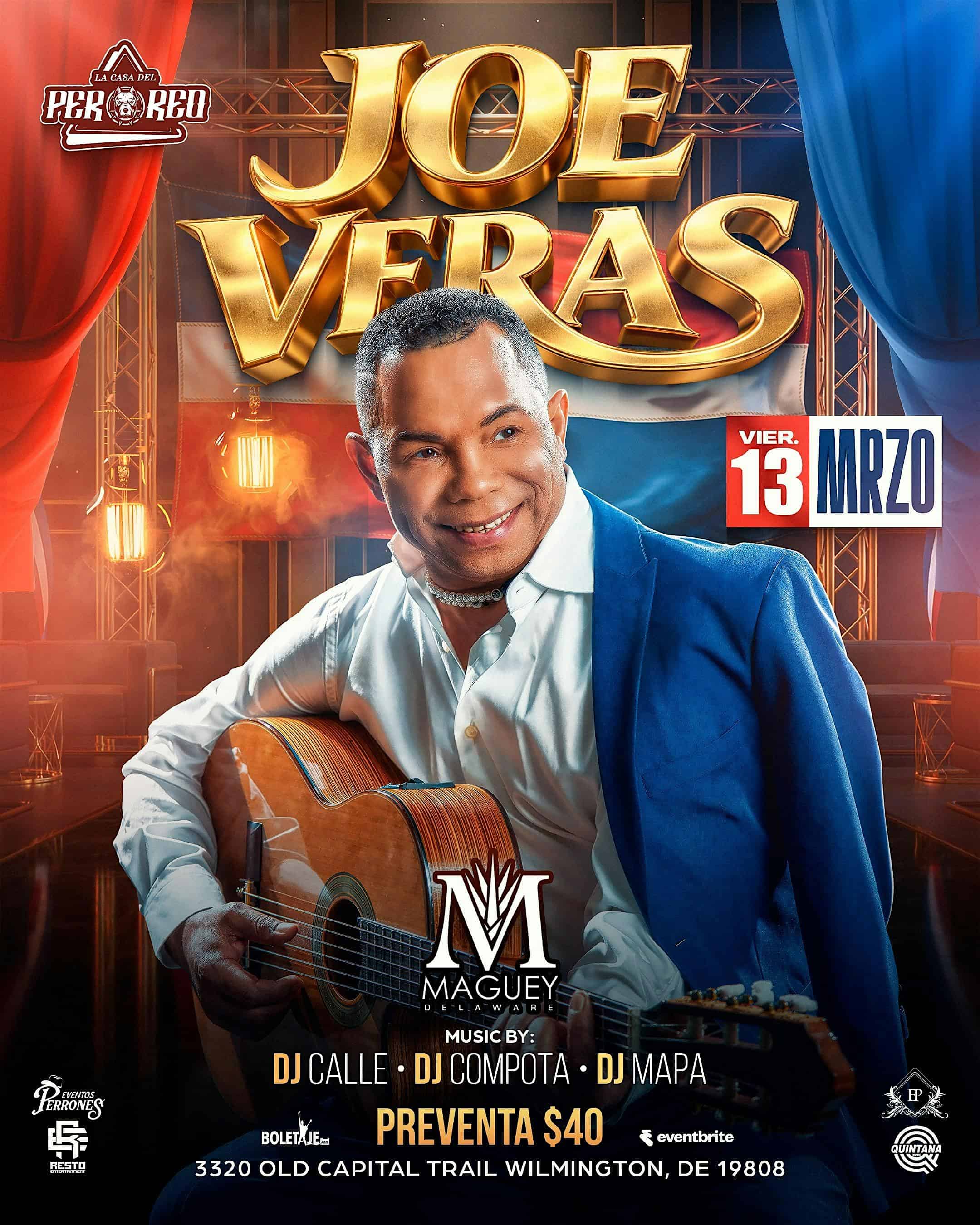 by admin23Feb Joe Veras En Vivo en El Maguey Delaware at El Maguey – Wilmington, DE Joe Veras En Vivo en El Maguey Delaware at El Maguey – Wilmington, DE 1 1 people viewed this event. ¡No te pierdas a Joe Veras en vivo en El Maguey Delaware para una noche llena de bachata y buena vibra! Tickets-RSVP Link Date And Time Friday, March 13th, 2026 08:00 PM (PST) Venue El Maguey Location 3320 Old Capitol Trail, Wilmington, DE 19808 Event Types Concert or PerformanceMusic Event Category Delaware Share With Friends Facebook Twitter Linkedin Xing Pinterest Share This Post: