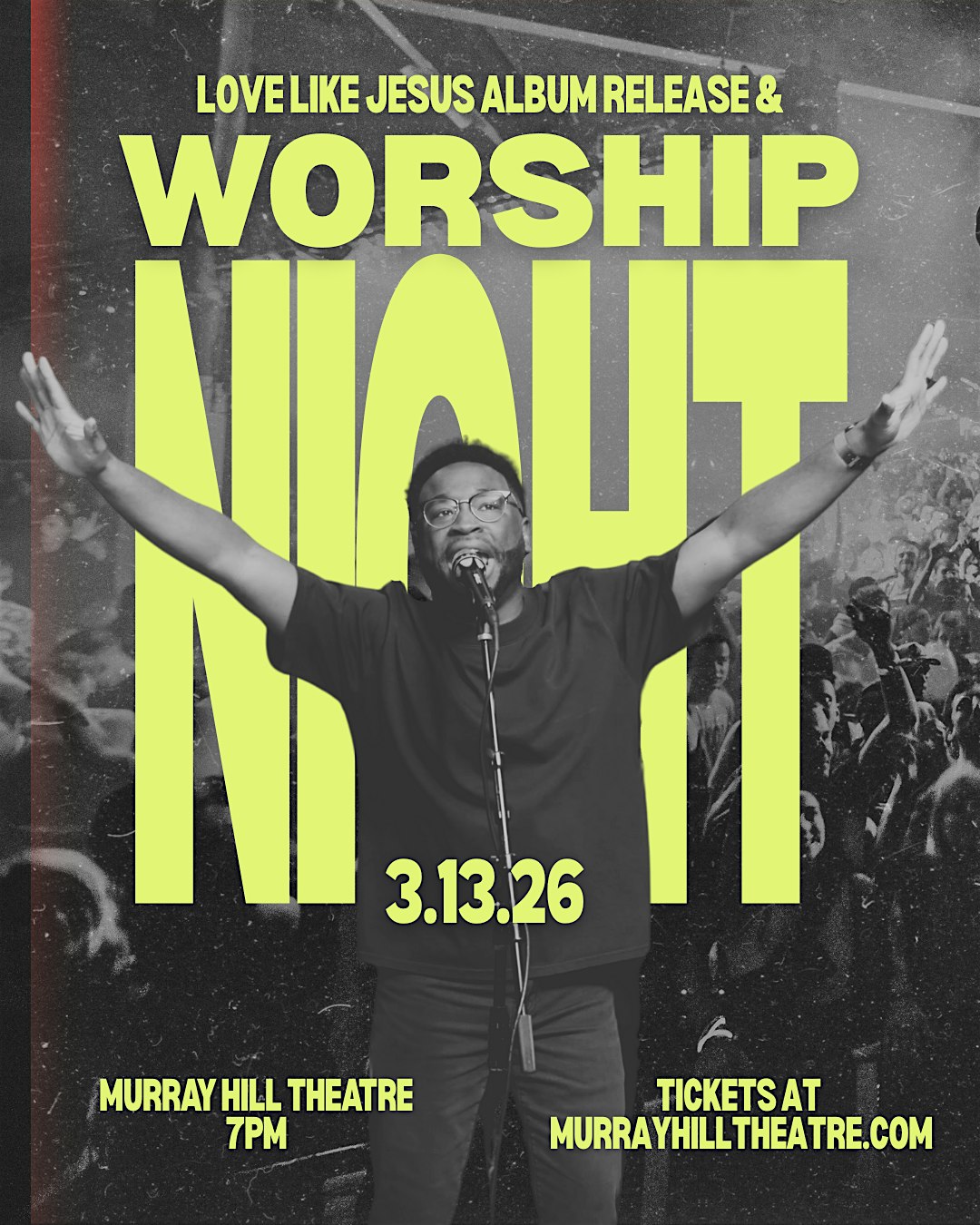 by admin23Feb Love Like Jesus Album Release Worship Night at Murray Hill Theatre – Jacksonville, FL Love Like Jesus Album Release Worship Night at Murray Hill Theatre – Jacksonville, FL 1 1 people viewed this event. Doors open at 6:30 pm for a powerful night of worship and celebration! This will be a seated event. Get tickets now! Tickets-RSVP Link Date And Time Friday, March 13th, 2026 07:00 PM (PST) Venue Murray Hill Theatre Location 932 Edgewood Ave S, Jacksonville, FL 32205 Event Types Concert or PerformanceMusic Event Category FloridaJacksonville Share With Friends Facebook Twitter Linkedin Xing Pinterest Share This Post: