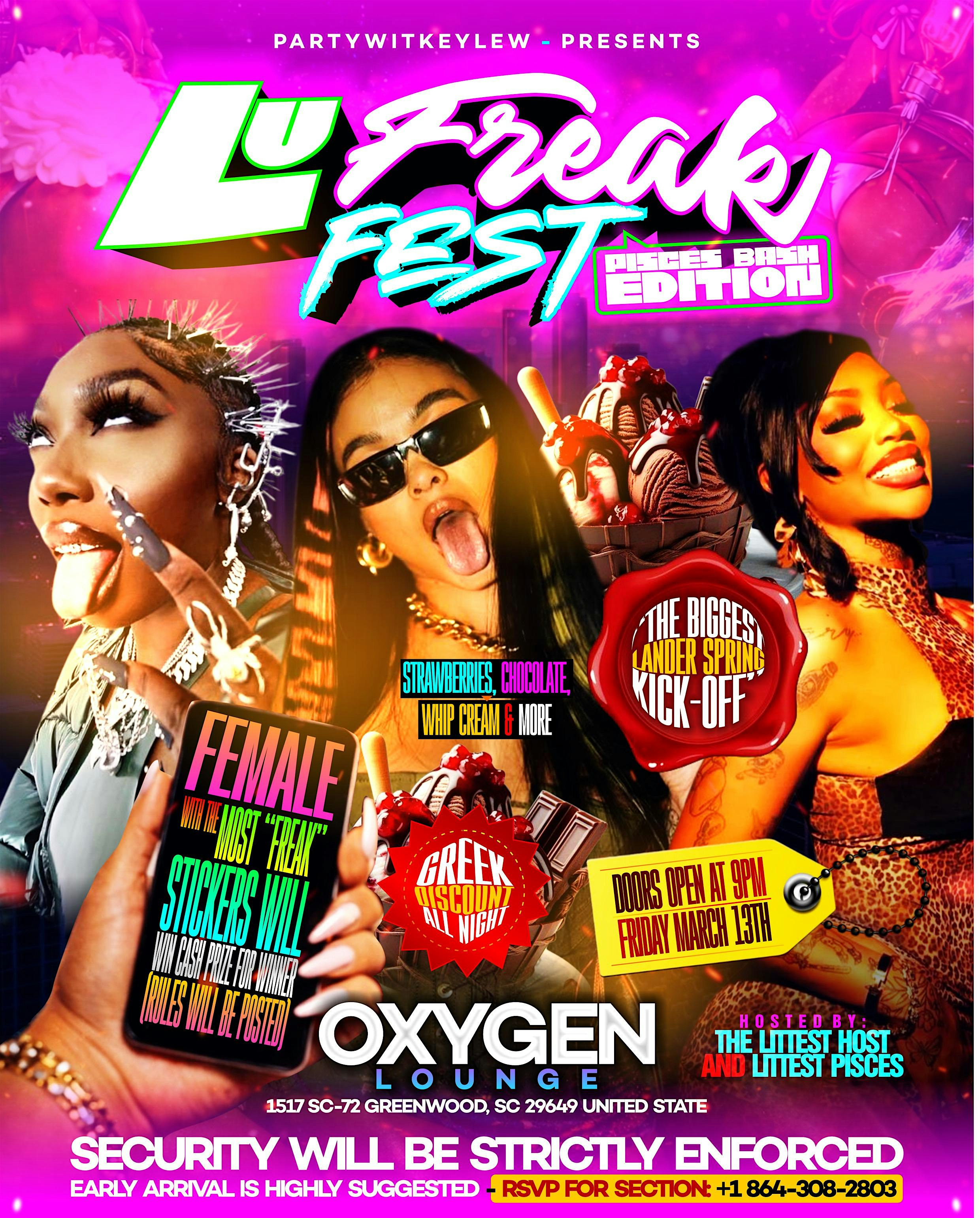 by admin27Feb LU Freak Feast (Pisces Bash Edition) at 1517 SC-72 – Greenwood, SC LU Freak Feast (Pisces Bash Edition) at 1517 SC-72 – Greenwood, SC 1 1 people viewed this event. The biggest spring kickoff in the state will be at Lander March 13th at Oxygen Lounge Tickets-RSVP Link Date And Time Friday, March 13th, 2026 09:00 PM (PST) Venue 1517 SC-72 Location 1517 South Carolina 72, Greenwood, SC 29649 Event Types Food & DrinkParty or Social Gathering Event Category South Carolina Share With Friends Facebook Twitter Linkedin Xing Pinterest Share This Post:
