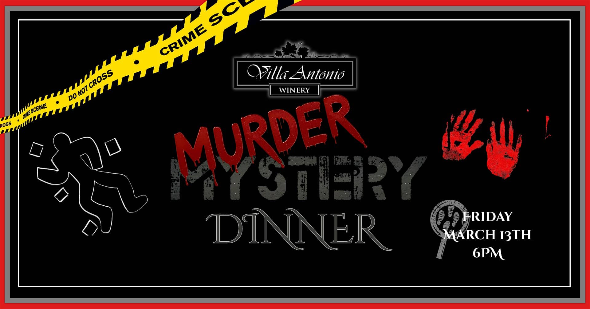 by admin14Feb MURDER MYSTERY DINNER at Villa Antonio at Villa Antonio Winery – Hillsboro, MO MURDER MYSTERY DINNER at Villa Antonio at Villa Antonio Winery – Hillsboro, MO 2 2 people viewed this event. MURDER MYSTERY DINNER – FRIDAY, MARCH 13th There’s been a MURDER in Mayberry! Who did it?!? Was it YOU?? Tickets-RSVP Link Date And Time Friday, March 13th, 2026 11:00 PM (PST) Venue Villa Antonio Winery Location 3660 Linhorst Road, Hillsboro, MO 63050 Event Types Food & Drink Event Category Missouri Share With Friends Facebook Twitter Linkedin Xing Pinterest Share This Post: