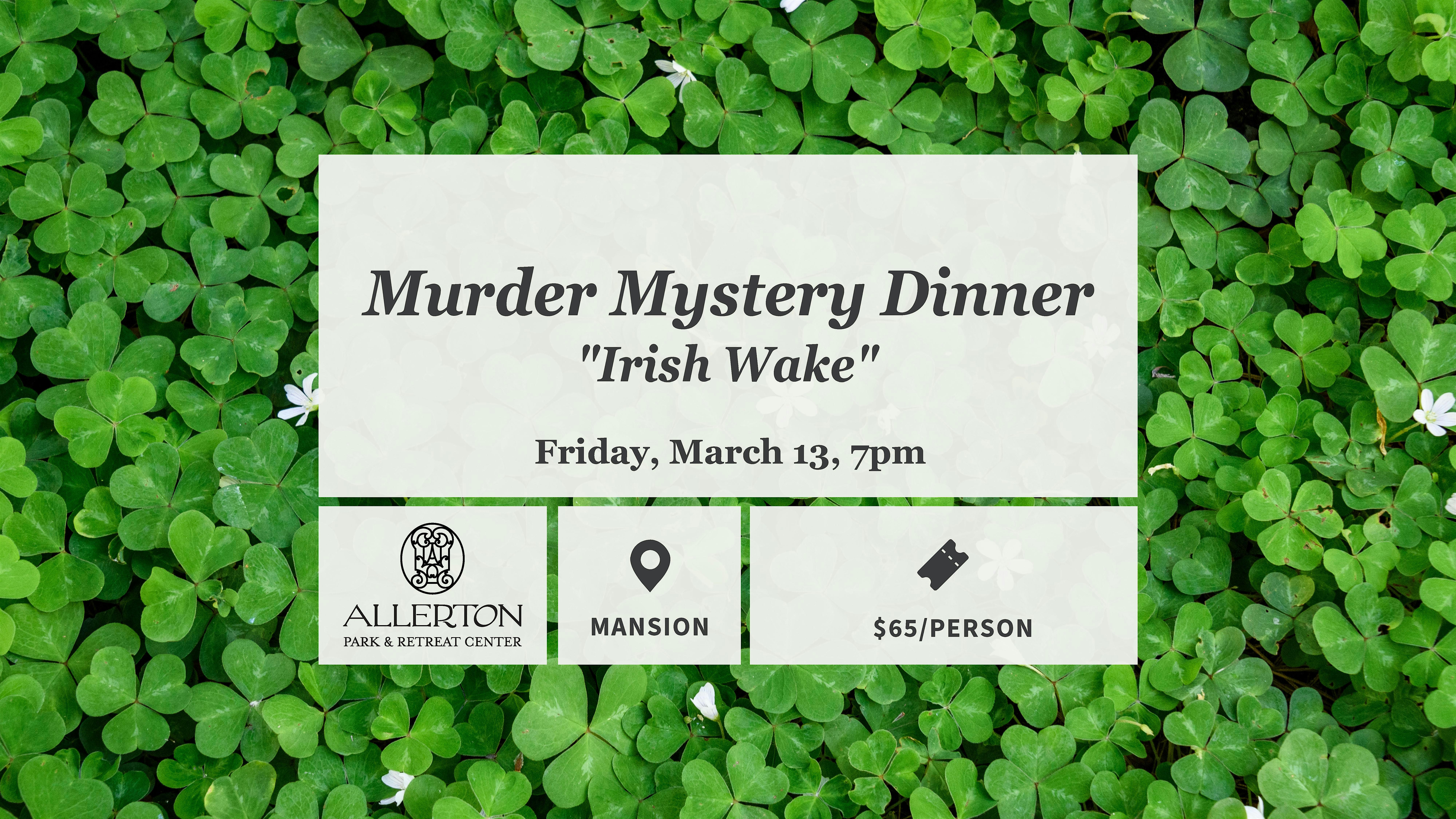 by admin23Feb Murder Mystery Dinner: Irish Wake at Allerton Park & Retreat Center – Monticello, IL Murder Mystery Dinner: Irish Wake at Allerton Park & Retreat Center – Monticello, IL 3 3 people viewed this event. Put your crime solving skills to the test at a murder mystery dinner in the Allerton Mansion! Tickets-RSVP Link Date And Time Friday, March 13th, 2026 07:00 PM (PST) Venue Allerton Park & Retreat Center Location 515 Old Timber Road, Monticello, IL 61856 Event Types Food & Drink Event Category Illinois Share With Friends Facebook Twitter Linkedin Xing Pinterest Share This Post: