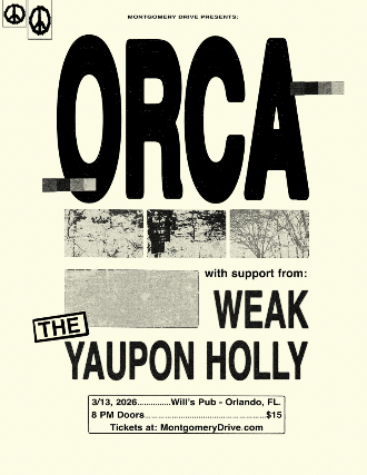 Montgomery Drive Presents ORCAWeakThe Yaupoon Holly March 13th,, 2026Wills Pub – Orlando, FL