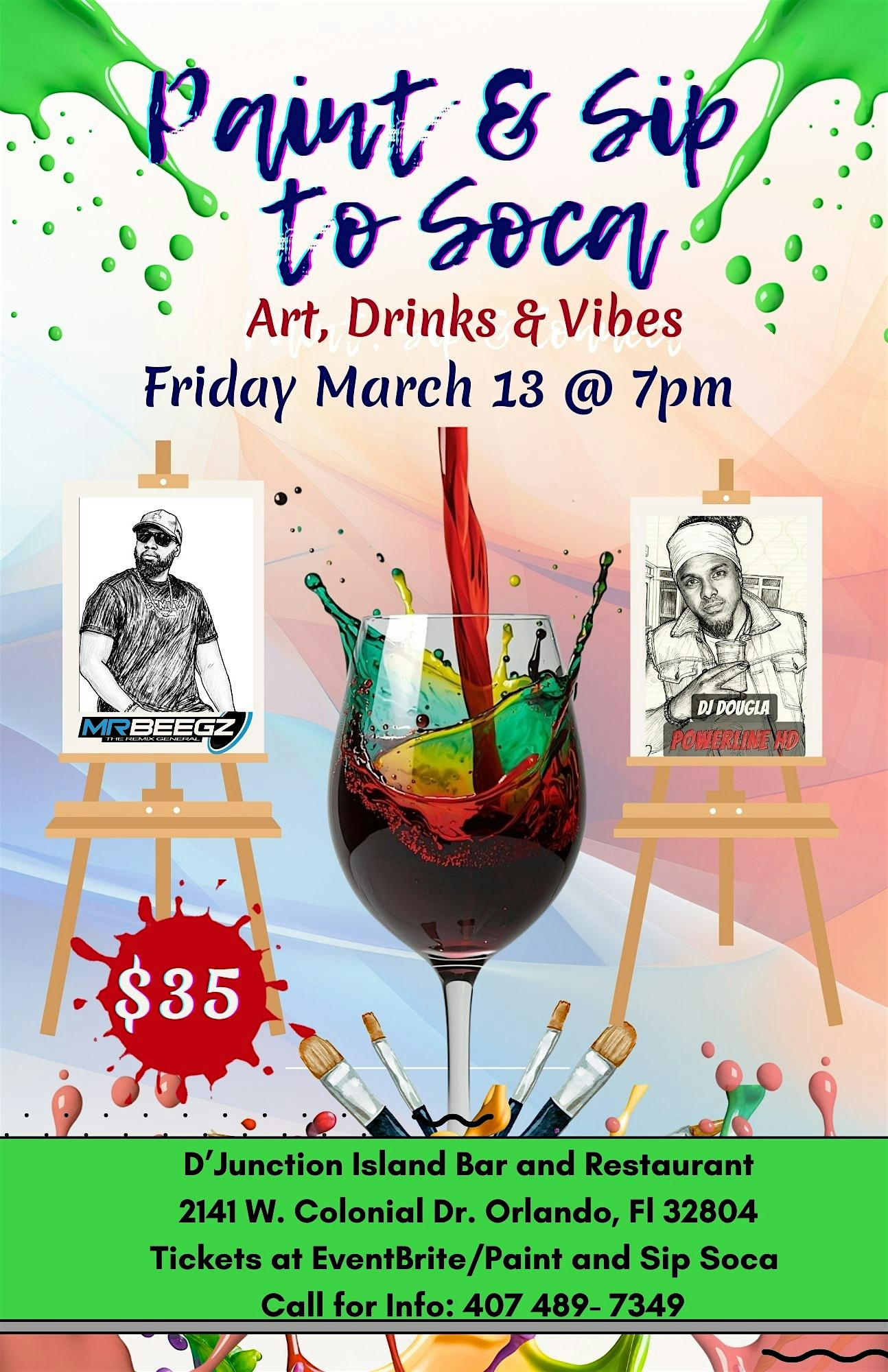 by admin27Feb P.A.S.S. – Paint And Sip To Soca at D’Junction Island Bar and Restaurant – Orlando, FL P.A.S.S. – Paint And Sip To Soca at D’Junction Island Bar and Restaurant – Orlando, FL 1 1 people viewed this event. Explore your artistic side as you sway to the sweet sounds of soca! Tickets-RSVP Link Date And Time Friday, March 13th, 2026 @ 07:00 PM Location 2141 West Colonial Drive, Orlando, FL 32804 Event Types MusicParty or Social Gathering Event Category FloridaOrlando Share With Friends Facebook Twitter Linkedin Xing Pinterest Share This Post: