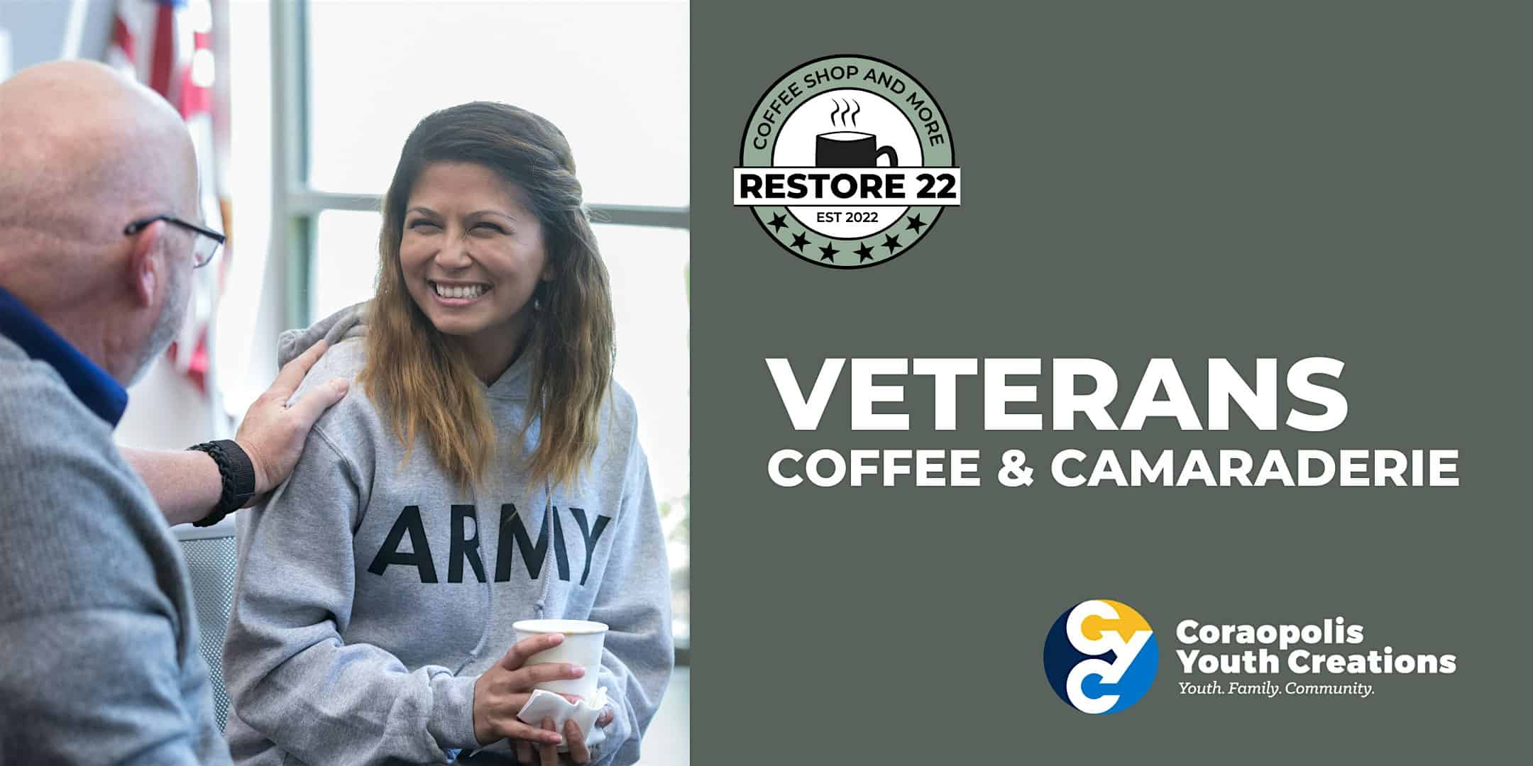 by admin14Feb Restore 22 Veterans Coffee & Camaraderie at The Hub – Coraopolis Youth Creations – Coraopolis, PA Restore 22 Veterans Coffee & Camaraderie at The Hub – Coraopolis Youth Creations – Coraopolis, PA 3 3 people viewed this event. Anyone who has ever served in the US military is invited to an informal gathering to enjoy good conversation and fun. Tickets-RSVP Link Date And Time Friday, March 13th, 2026 12:00 PM (PST) Venue The Hub - Coraopolis Youth Creations Location 912 4th Avenue, Coraopolis, PA 15108 Event Types Food & DrinkParty or Social Gathering Event Category Pennsylvania Share With Friends Facebook Twitter Linkedin Xing Pinterest Share This Post: